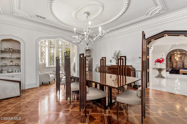 2 Staircases,Wainscoting,High Ceilings,Crown Molding,Built-in Features,Wet Bar,Wired for Sound,Recessed Lighting,Coffered Ceiling(s),Cathedral Ceiling(s),Beamed Ceilings,Pantry,Balcony