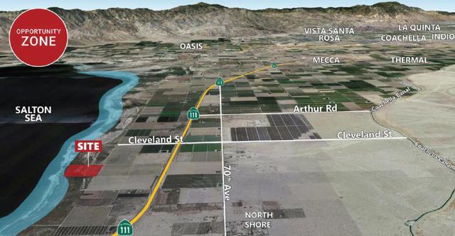 Potential for very warm/early harvest nearly frost free potential farmground. Investment opportunity with various future uses such as agriculture, future residential development, or solar farm. Beautiful 360 views of the Salton Sea, Santa Rosa Mountains, and Mecca Hills. Not in the conservation area. In Opportunity Zone, provides potential tax incentives. Near new Elementary School currently under construction.