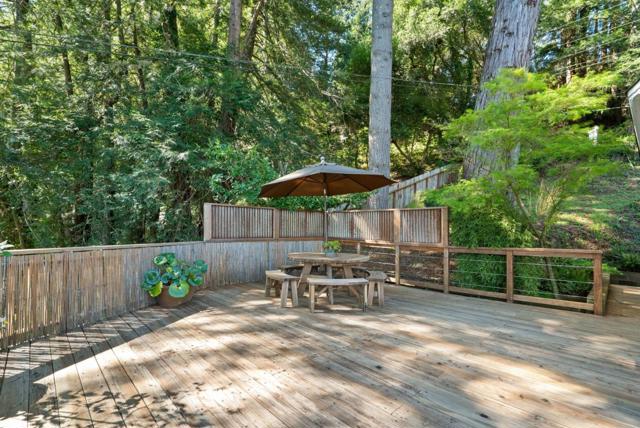 Welcome to 100 Camino Sinuoso, Scotts Valley. This intimate retreat is perfect for anyone looking for a space to call their own. An enchanting, private road leads you to a secluded half-acre parcel perched above a serene mountain valley. Ideally situated on this parcel sits an adorable single-level 2-bedroom, 2-bathroom ranch-style home. Designed to prioritize indoor-outdoor living and maximize the sweeping valley views, this home features an open floor plan, large windows, and sliding glass doors to a spacious back deck. The recently updated kitchen boasts a breakfast bar, walk-in pantry, new quartz countertops, stainless steel appliances, and a chic farmhouse sink. One bedroom is tucked away on each side of the home, providing great separation of space for family members and guests. Dramatic wide-plank cherry wood floors, solid-wood doors, vintage-inspired door hardware, plentiful skylights, abundant storage, attached 2-car garage, detached carport, & garden shed round out the list of amenities. Whether you're planting an edible garden on the lower portion of the property, enjoying coffee with a view from the back deck, or basking in the soothing sounds of nature while contemplating life's big questions, one thing is certain: this is it...your private refuge...this is Home.
