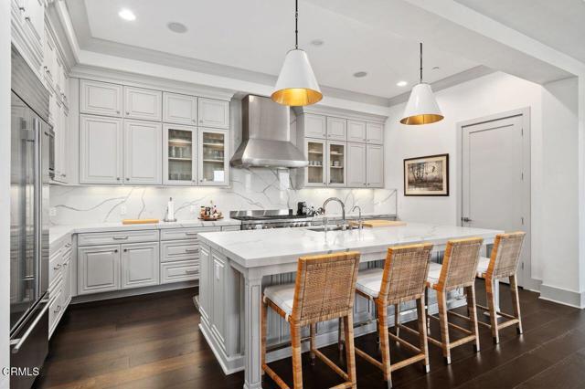 Experience refined living in this stunning 3-bedroom, 3-bathroom luxury condominium at the prestigious Jamison Place on Millionaire's Row. Offering approximately 2,662 square feet of beautifully designed living space, this elegant residence features breathtaking mountain views and exceptional upgrades throughout. The bright and expansive living area showcases gorgeous hardwood floors, abundant natural light, and custom drapery, creating a warm yet sophisticated atmosphere. Just off the living room is a stunning private office, providing a stylish and functional workspace. The gourmet kitchen is designed for both everyday living and entertaining, featuring premium stainless steel appliances including a Wolf range and Sub-Zero refrigerator, custom cabinetry, and a large center island perfect for gathering and meal preparation. The adjoining formal dining area offers an elegant setting for hosting. The primary suite offers a relaxing retreat with a comfortable seating area and private balcony with mountain views. The primary bathroom features a luxurious sunken soaking tub, separate shower, and a custom walk-in closet. Two additional spacious bedrooms are located on the west side of the residence and share a connecting bathroom. A large laundry room with extensive cabinetry adds convenience and storage. A rare highlight is the private 4-car tandem garage, beautifully remodeled with custom cabinetry, wine refrigerator, fitness area, and lounge space, creating a versatile extension of the home. Jamison Place offers beautifully maintained grounds, a community pool, and rooftop viewing areas with sweeping views of the San Gabriel Mountains and the iconic Rose Parade route. This exceptional residence offers luxury, comfort, and an outstanding Pasadena location.