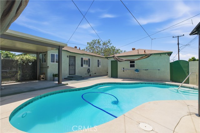 Discover this charming 3-bedroom, 1-bath pool home in Bellflower, offering 1,241 sq ft of living space, ideal for summer parties and family entertainment. Featuring granite countertops, hardwood floors under the carpet and vinyl flooring, and a detached two-car garage with laundry, this home combines comfort with convenience. Enjoy a private backyard with an attractive pavilion. Great Home in a great Location. MUST SEE. The roof the windows and outside stucco are 5 years old. Newer water heater in the garage.