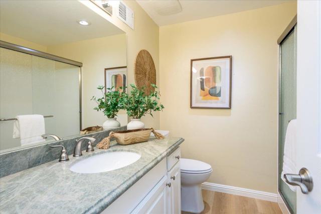This Pristine, Bright & Updated 2 Story Bay Vista TH features 1,670 sq ft of comfortable living space & offering 3 BRs & 2 1/2 BAs. A welcoming Entry & large Living Rm continue to expand w/ the perfect space for a Den, Music Rm or Dining Rm (your choice), and leads to a Kitchen/Family Rm at the back, sparkling w/ modern appliances, including an electric cooktop range, dishwasher, microwave & refrigerator, all complemented by elegant granite countertops. The combination Kitchen/Family Room allows versatility of use as a Dining Rm, Play Rm or Office plus easy access to the rear yard. Next to the Kitchen is the convenience of a sep Laun Rm w/ more cabinets & full size W/D. The primary suite is a large retreat with a Walk-in closet and serene BA. Just add a comfortable chair or 2 for quick get-aways! The addl 2 BRs are roomy, light filled & offer closet organizers. Immac BAs w/ stone counters will catch the eye. Amenities include Hdwd Flrs. Newer Carpet, Shutters and Blinds, plus a Private enclosed Patio giving the enjoyment of nature & the outdoors & leading to a 2 Car Garage. Owned and loved for 50 yrs with Pride of Ownership and located w/in the SM-FC Elem School Dist, this home is perfect if you are seeking great maintenance, educ & rec opportunities. It's a DON'T MISS!