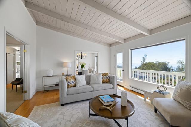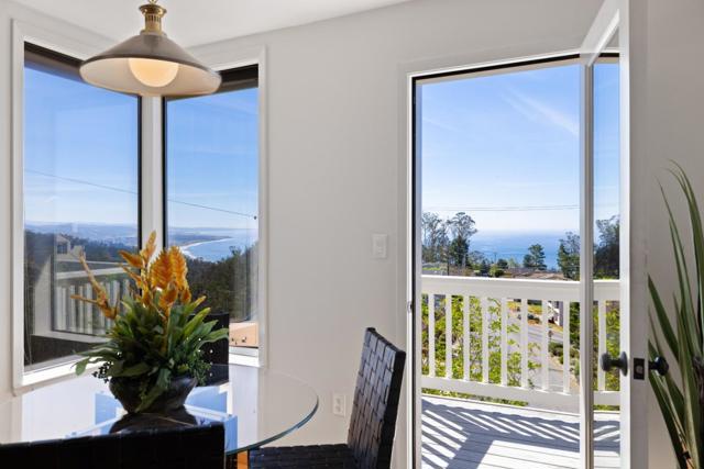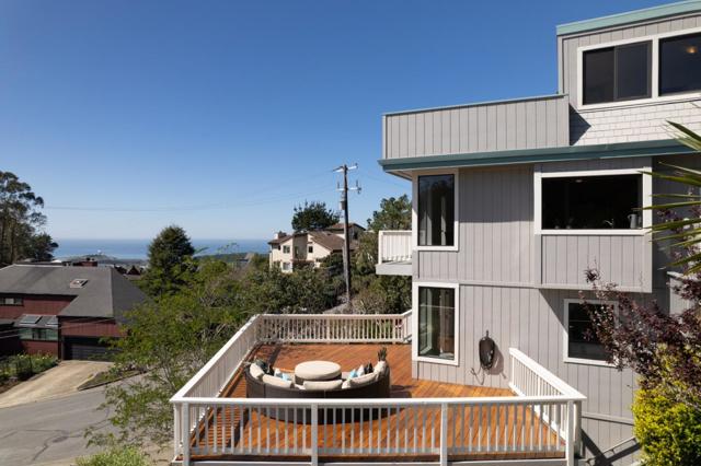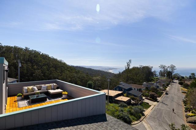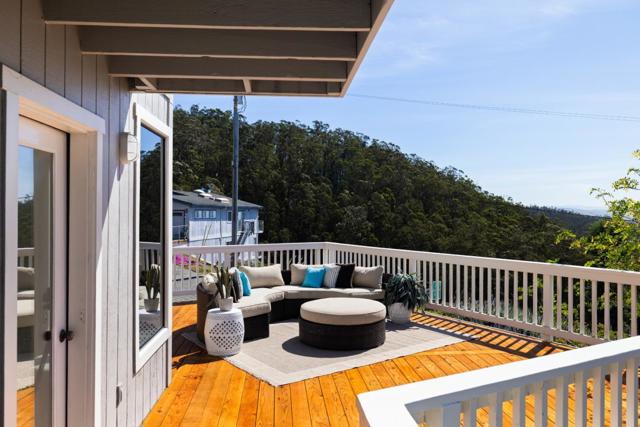 Welcome to 103 Dolphine Avenue, a gem nestled at the top of the sought-after El Granada Highlands. The home boasts 5 large bedrooms and 3.5 baths across 3 levels. The living spaces are highlighted by hardwood floors, high ceilings and cozy fireplaces that add warmth and charm. The property offers stunning ocean and coastline views from multiple vantage points. The heart of this home is undoubtedly the main level on the second floor, with its eat-in kitchen equipped with stainless steel appliances, Its formal dining room where you can enjoy meals while taking in the jaw-dropping views and a bright living room with high ceilings and a wood burning fireplace. You'll find two large bedrooms and a full bath on the third floor and three bedrooms and two baths, along with the laundry room on the lower level. Indoor/outdoor living is a breeze when you step out onto any of the multiple decks from the living spaces and bedrooms. The yard features mature landscaping across its terraced apron, while apple, pear and plum trees add a touch of nature's bounty. A fenced garden keeps the deer at bay and includes veggie beds to tend for those with a green thumb. With its blend of comfort, views, style, and location, this home is an incredible opportunity for anyone looking to live Coastside.