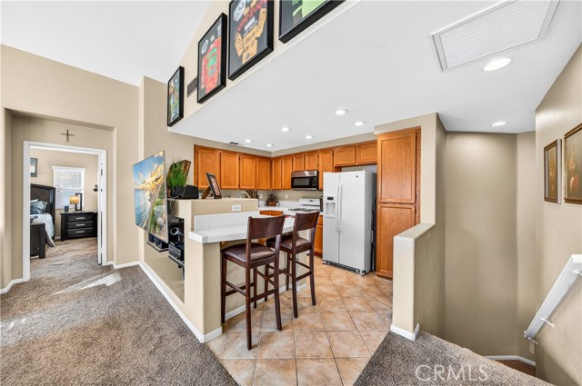 SCRIPPS RANCH GEM NEAR COMMUNITY POOL/SPA WITH VAULTED CEILINGS & ATTACHED GARAGE! Discover this light and bright upper-level unit perfectly situated in a premier Scripps Ranch community. This home impresses from the moment you enter with soaring vaulted ceilings in the living room and an architectural entertainment niche with recessed lighting. The open-concept kitchen features timeless oak cabinetry, newer appliances, and crisp white tile countertops. There is also a quaint balcony offering views of the community where you can sit and enjoy reading your favorite book or sipping your morning tea. Relax in the expansive primary suite, also boasting vaulted ceilings and an en-suite bathroom with a dual-sink vanity. Recent updates include newer neutral carpeting and stylish faux-wood blinds. Enjoy the rare convenience of a 1-car attached garage (housing the washer/dryer) plus an additional assigned parking space. Residents enjoy resort-caliber amenities including a sparkling pool and spa. Located just minutes from top-rated schools, parks, shopping, and easy freeway access. This turnkey beauty is move-in ready and waiting for you!