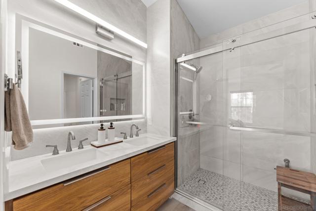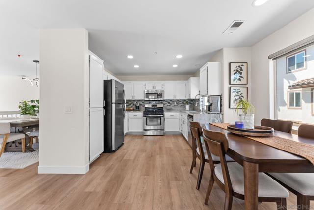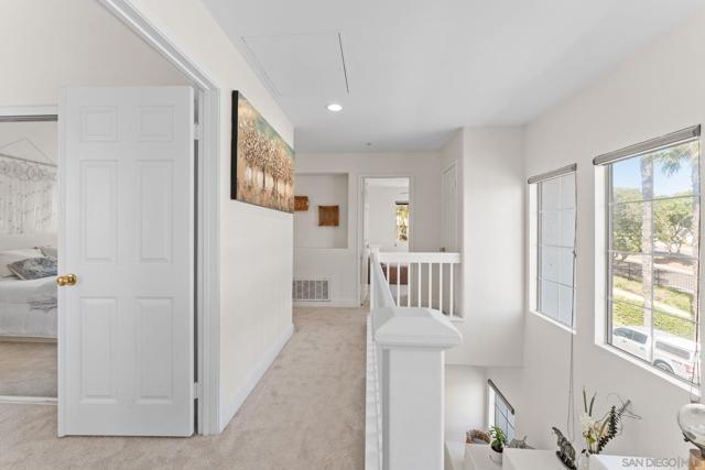 Welcome to this 3-bedroom, 2.5-bath corner townhome in the highly desirable Wateridge community of Sorrento Valley. Ideally positioned with only one shared wall and unobstructed surroundings, this home offers a rare sense of privacy along with a great balance of natural light throughout the day. This home has also undergone extensive renovations and upgrades, including a remodeled kitchen with quartz countertops, painted cabinetry, and recessed lighting, along with updated bathrooms featuring designer finishes, LED mirrors, and new vanities. Additional improvements include new LVP flooring, new carpet, updated closets with soft-close drawers, newer fans, and a newer water heater creating a clean, modern, move-in ready feel. Enjoy convenient access to the community pool just steps away, along with resort-style amenities including tennis courts, sand volleyball, greenbelt areas, and walking paths, perfect for an active and family friendly lifestyle. Located in the heart of Sorrento Valley, you’re just minutes from major tech and biotech hubs, UCSD, and some of San Diego’s best beaches. With easy access to I-5 and I-805, commuting is seamless.