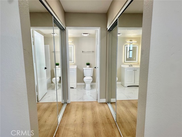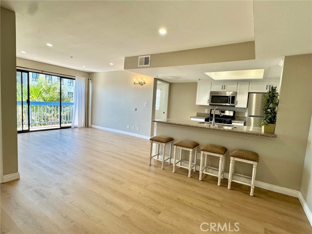 Welcome to 1052 S Mariposa Ave #305 — a beautifully updated 2-bedroom, 2-bath residence perfectly situated in the vibrant heart of Koreatown. This modern unit offers approximately 850 sq ft of thoughtfully designed living space featuring an open-concept layout, stylish laminate flooring, and abundant natural light throughout. Enjoy a sleek kitchen equipped with quartz countertops, shaker-style cabinets, and stainless steel appliances, seamlessly flowing into a bright living area that opens to a private balcony — ideal for relaxing or entertaining. The primary suite includes its own balcony, generous closet space, and a private ensuite bath. The well-maintained building provides controlled access, a community laundry area, and an inviting central courtyard. Experience comfort and city living at its best — schedule your tour today and make this Koreatown gem your next home!