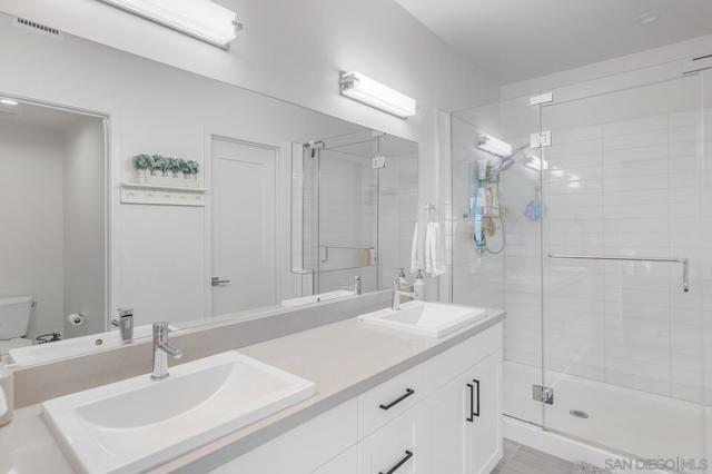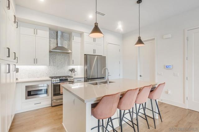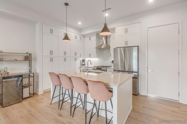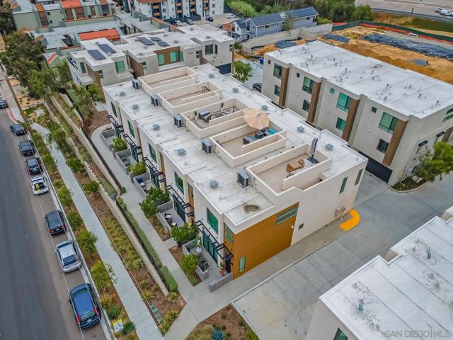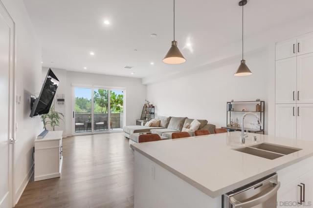 Modern 3-Bedroom Townhome with Rooftop Deck & Prime Location. Built in 2022, this light-filled and stylish 3-bedroom, 2.5-bath townhome combines modern convenience with thoughtful design. Featuring an open floor plan with soaring 12’ ceilings, LVP floors throughout, and recessed lighting throughout, this home offers a bright and airy living space perfect for both relaxing and entertaining. The gourmet kitchen boasts shaker-style cabinetry, quartz countertops, and stainless steel appliances—ideal for home chefs. A spacious private front patio provides a welcoming entry, while the spectacular rooftop deck is the crown jewel—plumbed for gas and power, ready for BBQs, entertaining, or simply taking in stunning panoramic views. Additional highlights include: central A/C and ceiling fan for year-round comfort, primary custom closet and raised panel doors, slider vanishing screen, convenient side-by-side laundry, direct-access 2-car garage with built-in storage & ceiling racks, powder room for guests, low HOA dues. Perfectly situated near major freeways, top-rated schools, downtown, restaurants, parks, the waterfront, and the world-famous San Diego Zoo, this home offers unbeatable access to everything San Diego has to offer. Don’t miss this rare opportunity to own a newer-build, move-in ready townhome in the heart of the city.