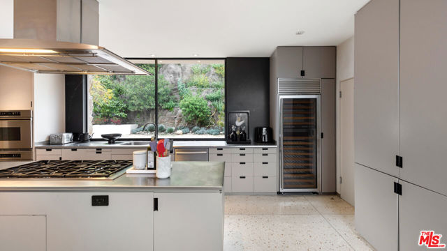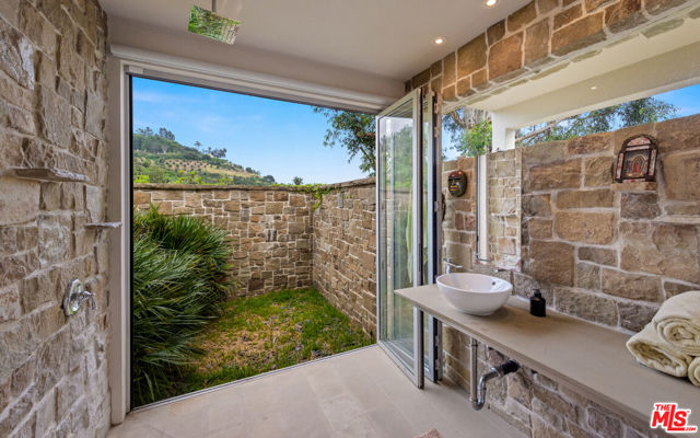 Available fully furnished and turnkey for short, midterm, or long term lease! Rustic and urbane, old-world and high tech, where rural estate meets downtown elegance in this once in a lifetime sensory immersion experience. Escape from ordinary down the a private driveway to the gravel motor court, earthy stone fascia, and arboreally adorned grand entrance to the exquisite execution of this contemporary hillside estate. Natural light will greet you in virtually every corner of the dramatically-styled indoor-outdoor open plan living spaces with floor to ceiling glass walls that reveal resort-style landscaping and marvelous canyon views. You will cherish every moment in the spacious living room with its uplifting fireplace, family room, dining room, gourmet kitchen with professional appliances, custom cabinetry and breakfast, and covered patio. Indulge your inner sun-worshiper on the rear lawn and wood deck or beside the shimmering pool in the viewing pavilion. Retreat to the opulent primary suite, nestled in pastoral splendor and featuring a fireplace, large walk-in closet and dressing area, and picturesque bath with dual basins, spa tub, and steam shower. A guest/maid suite with bath and laundry room is located off the kitchen and two additional guest rooms with a shared bathroom are available for your family and friends. A detached guest house with bedroom, bath, kitchenette and private patio with koi pond is available for extra special guests or private getaways. Expertly decorated with curated artwork and careful attention to the balance between color and texture and light and dark, as you ensconce yourself in a perpetual source of positive energy day and night, whether you're entertaining, working, or relaxing, alone or with family and friends. Located on a cul-de-sac off of Stone Canyon and tucked away in the gorgeous hills of Bel Air, this one-of-a-kind domicile is an encounter to remember.