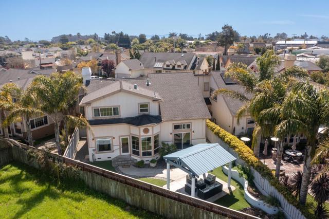 Welcome to this stunning 3-bedroom, 2-bathroom home in beautiful Santa Cruz. Spanning 2,123 sq ft, this property features a ground floor primary bedroom suite including a walk-in closet, spacious shower, plus separate tub, and double sinks with marble tile surfaces. The well-equipped kitchen features stainless steel appliances - new refrigerator, 5 burner gas cooktop, warming drawer, microwave, granite counter tops, and a breakfast nook with bay window overlooking the low maintenance back yard, perfect for outdoor entertaining at its best with a sitting area beneath a gazebo and the soothing sounds of a waterfall. Upstairs you will find two bedrooms, bath, and a large bonus room. The vaulted ceilings, a bay window, and high ceilings enhance the sense of space and light. The dining area and living room feature a cozy fireplace, perfect for relaxing evenings. The 2-car garage is equipped with an EV Hookup Level 2. Energy-efficient features include owned solar power. Recessed lighting in kitchen area, central forced air heating system, inside laundry. New front landscaping is maintained by the HOA. Located on a quiet cul-de-sac in a central location, near shopping, the beach, and freeway. Don't miss the chance to make this exceptional property your new home in Santa Cruz.