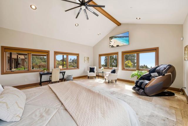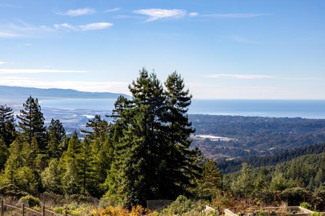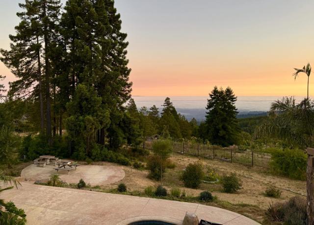 OUTSIDE OF SILICON VALLEY, A MONTEREY BAY HORIZON | Atop the Santa Cruz Mtns, a retreat offering escape from the noise, the fast pace, and expectations. Private conversations here stay far away from the world below. ~1 hour from Silicon Valley, Palo Alto, and Monterey. Secure gated entry opens to a residence defined by ocean views, natural materials, peace, and luxury. Living areas flow out to decks overlooking the coast and lush grounds. Primary Suite with spa bath. Relax in your sauna or steam shower then step onto the balcony for mtn. air and an ocean view - spas in the valley don't compare. Guest bdrms open to a promenade overlooking the pools. Steps away from the beach-entry pool, dbl-door entry into a 2500sf± basement w/12' ceilings! Sit poolside or float atop sparkling water while gazing to the ocean, enjoy the ground's juicy strawberries! Picnic under the redwoods, get dirty in the veggie beds! Pre-dev. done for 1200sf ADU w/400sf loft. Potential for: horses, vertiport, dirt-biking, golf, etc. Rare power capacity for heavy demand; private water, security, and internet; solar power. 5-star Air bnb! For a compound, legacy retreat, or forward-looking property inviting new forms of air mobility, the groundwork is there. Income potential. Offering memorandum upon request.