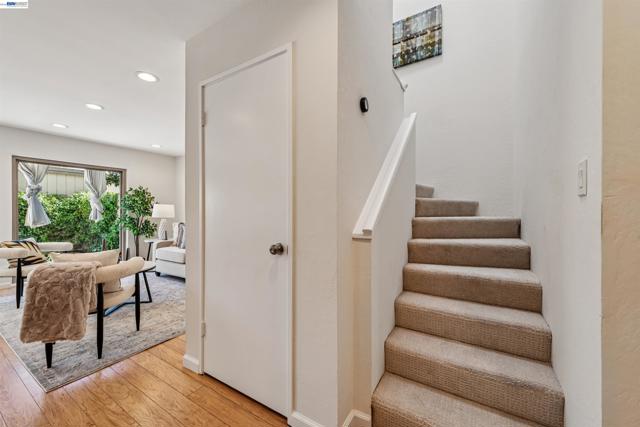 Wonderful, bright, 3 bedroom, C model Townhouse in Islandia, with loads of upgrades, including newer counter tops, cabinets and stainless steel appliances in the kitchen, newer laminate floors, brand new carpet on the stairs and upstairs, newer stackable washer and dryer, recessed lighting throughout downstairs as well as , all dual pane windows and upgraded bathrooms with granite counters! Featuring a two car garage, a lovely, plant filled back patio to relax in, and just steps from the community pool and club house, this home is ideally situated close to the Harbor Bay Landing shopping Centre, community tennis courts, and public transport, including the Express bus line to San Francisco as well as the San Francisco ferry!