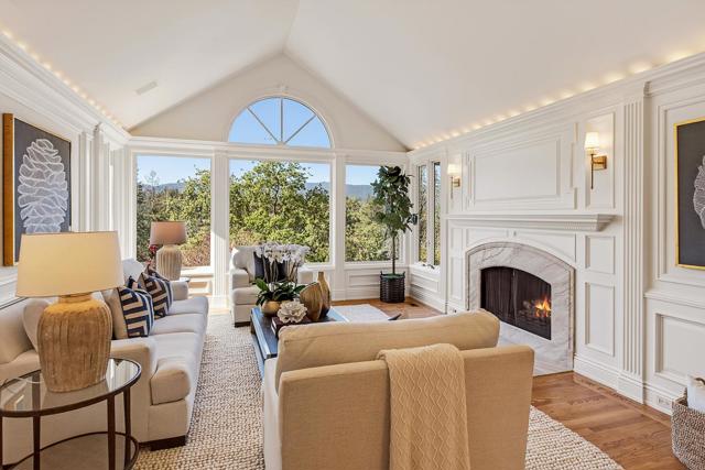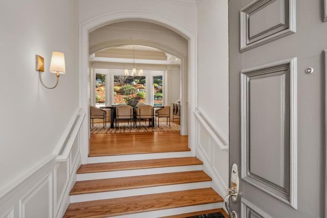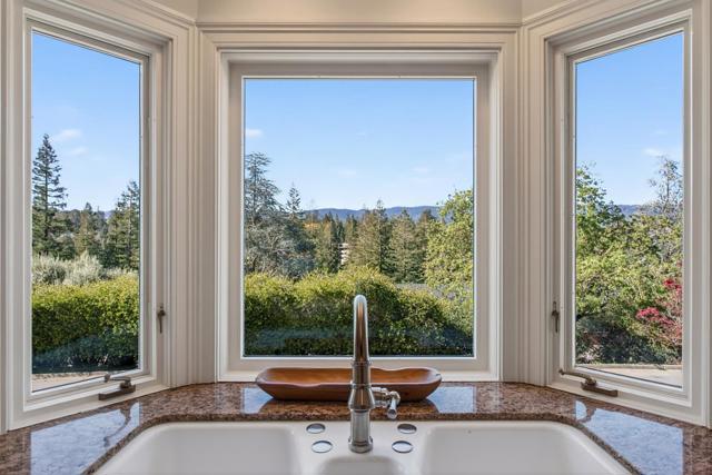 This custom-built home in Sharon Heights, with the enduring craftsmanship of renowned builder Lencioni Construction, commands sweeping views of western hills & across a fairway of Sharon Heights Golf & Country Club. Approx. one-third-acre property combines privacy & scenery with beautifully designed grounds, with a large deck, synthetic lawn, & a newly plastered pool & spa. Elevated yard expands the outdoor space with built-in seating, vegetable garden, & expansive vistas. Interior features timeless architecture arranged across one spacious main level, with elevator access from a lower-level three-car garage. Detailed millwork, raised paneling, wainscoting, & custom cabinetry reflect enduring craftsmanship, complemented by a crisp neutral palette & newly refinished hardwood floors. Generously scaled living spaces include a view-framed living room, formal dining room with butlers pantry, kitchen & breakfast area that open to the family room, all oriented toward the western hills. Primary suite enjoys sweeping views & a marble bath with a jetted tub beneath a bay window. Second bedroom doubles as an office or library with built-in cabinetry & access to the rear grounds. Close to shops, restaurants, Sand Hill Road, Stanford University, Highway 280, & top-rated Las Lomitas schools.