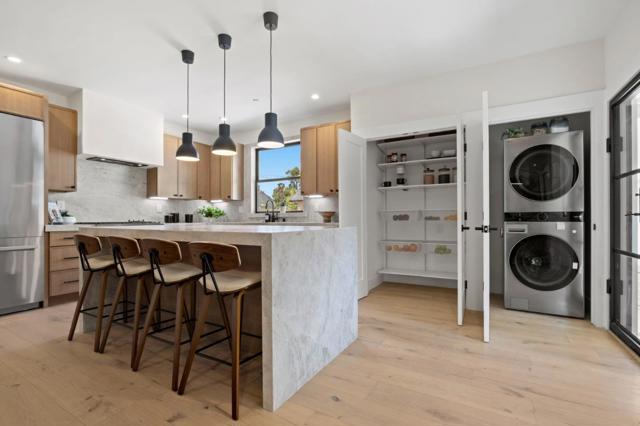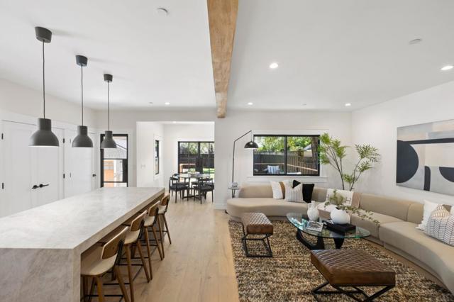 This impeccably remodeled Craftsman residence at 1117 Palm has been taken down to the studs and thoughtfully rebuilt with high-end finishes throughout. Featuring four bedrooms and three bathrooms, the home offers a flexible and functional layout with 2 bedrooms and 1 bathroom upstairs, and 2 bedrooms and 2 bathrooms on the lower level. The spacious ground floor primary suite is a true retreat, complete with a cozy fireplace, a generous walk-in closet, and a spa-inspired bathroom adorned with natural stone finishes. The expansive living and dining areas are filled with natural light and designed for both everyday living and entertaining. The chefs kitchen is beautifully appointed with quartzite countertops, high-end appliances, and refined finishes that carry throughout the home. Step outside to a private backyard with a large deck, perfect for dining, entertaining, and enjoying the California lifestyle. The fully updated garage offers incredible versatility, featuring recessed lighting and French doors that open to the backyard. This space is ideal as a home office or gym, with potential for an ADU (buyer to verify). Major upgrades include new plumbing, electrical, windows, a 50-year presidential roof, new furnace, and air conditioning, offering peace of mind for years to come.