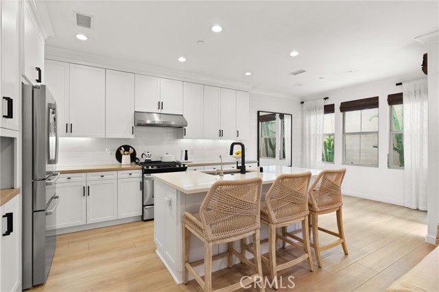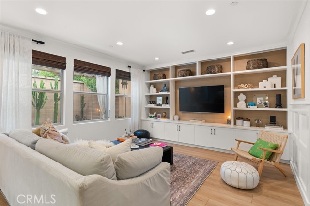 Welcome to 112 Gemstone, located in the highly sought-after Stonegate community. Featuring over $130,000 in custom designer upgrades, this home exudes pride of ownership from the moment you step inside. Elegant touches include custom window coverings, designer light fixtures, upgraded cabinet hardware, and luxurious Phillip Jeffries grasscloth wall coverings. Additional highlights include new Provenza flooring, a quartz kitchen island countertop, pull-out kitchen cabinet drawers, a custom backsplash, custom closets, wainscoting throughout, a bespoke built-in entertainment center, and much more. Every detail reflects superior quality—there’s not a single builder-grade finish in sight, and no expense has been spared. The beautifully tiled backyard patio features sprinklers for the decorative landscaping. The garage is equally impressive, outfitted with custom cabinets, overhead storage, a 240-volt outlet for EV charging, and sleek epoxy flooring. The community offers top-rated Irvine schools and resort-style amenities, including a pool, tennis courts, parks, basketball courts, BBQ areas, and playgrounds. Ideally situated within walking distance to Woodbury Town Center and the Jeffrey Open Space Trail, this stunningly upgraded home truly must be seen in person to be fully appreciated!