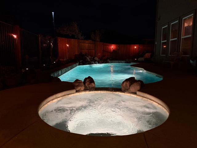 Welcome to your dream home in the gated community of Gold Creek Estates, offering comfort and resort-style living. This semi-custom two-story home sits on a level lot and features 4 bedrooms, 3 full bathrooms, and a three-car garage, perfect for everyday living and entertaining. The bright, open floor plan includes custom audio and a cozy gas fireplace in the great room. The kitchen shines with granite countertops, a center island, pantry, and a nearby full bath. A downstairs hobby room offers flexibility and can easily be converted into a fifth bedroom, ideal for guests, multigenerational living, or a home office. Enjoy outdoor living in the backyard with a custom pool and spa with waterfall, outdoor kitchen, and low-maintenance space ideal for relaxing or hosting. Upstairs features all four bedrooms, plus custom built-in shelving with a dedicated workspace, making working from home comfortable. The spacious primary suite includes room for a sitting or workout area and a spa-like bath. An upstairs laundry room adds convenience. Gold Creek Estates offers a clubhouse, pool, fitness center, walking trails, front-yard maintenance, and close access to New Hogan Lake and La Contenta Golf Course. Turn-key and low maintenance, this home is ready to enjoy the Gold Country lifestyle.