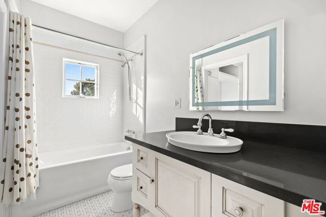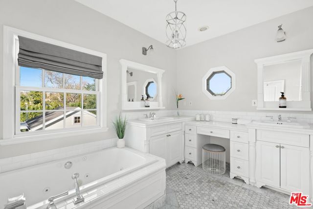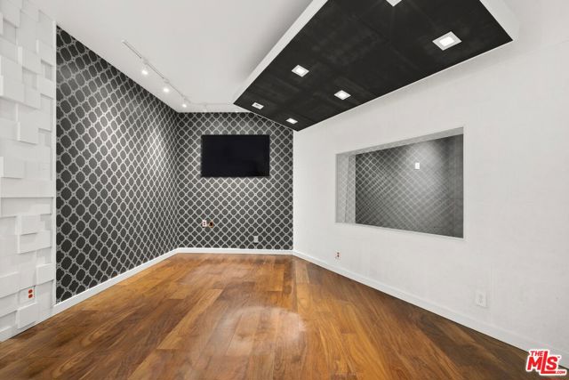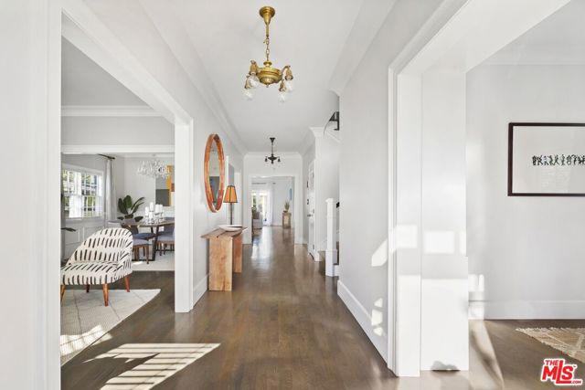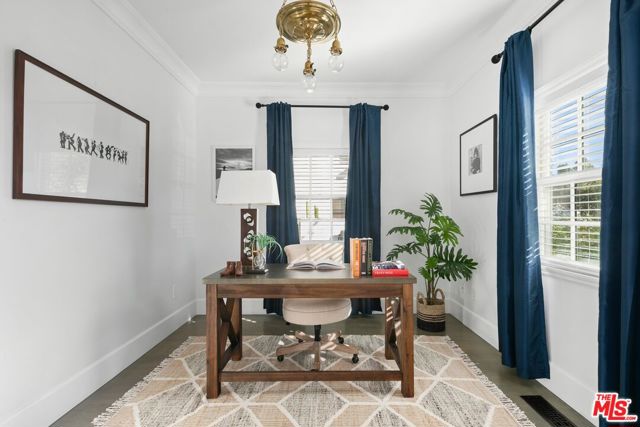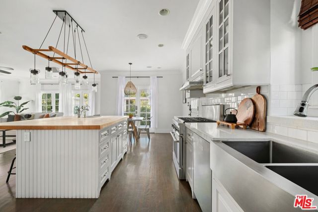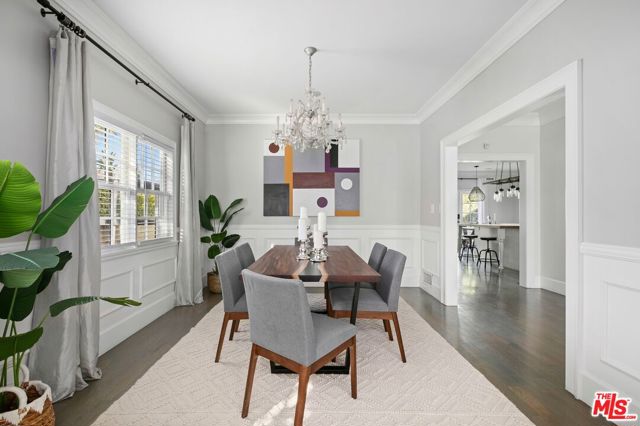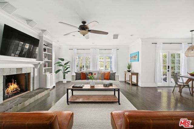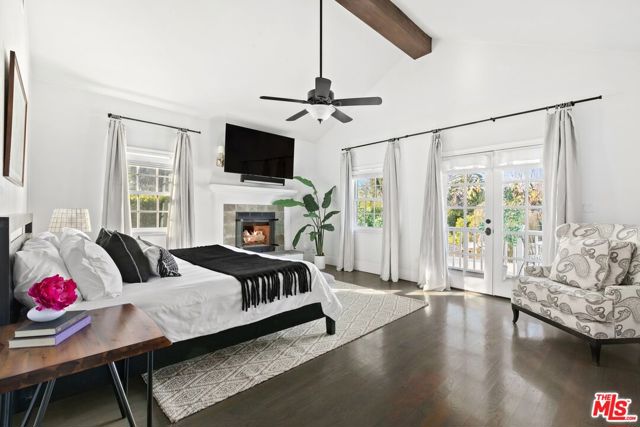 Located in West Toluca Lake is this gated 4-bedroom, 4 bathroom residence, a true haven with a myriad of exceptional features and amenities. Stepping inside you'll find an open concept dining room, a comfortable living area, and a gourmet kitchen featuring stainless steel appliances, Caesarstone countertops, and an expansive island for all your culinary needs. High ceilings grace each room with details such as hardwood floors, crown molding, and custom built-in cabinetry. The primary suite is a true sanctuary with its tall ceilings and updated bathroom with marble-adorned double vanities, a relaxing spa tub, separated shower, and walk-in closet. Off the primary suite, a spacious balcony overlooks the backyard. French doors provide effortless access to the yard from the main level, complete with a covered BBQ area for outdoor dining and a salt water pool with accompanying spa. The house is fully equipped with TVs, a Sonos sound system, wireless extension throughout, a Lutron lighting system, and an electric vehicle (EV) charger. Security and peace of mind are paramount, thanks to the Vivint smart alarm and camera system that safeguards your property around the clock. Other highlights include a tankless water system, dual-pane windows, and three cozy fireplaces. A detached recording studio is masterfully designed, featuring its own A/C system and can easily be utilized as an office. This residence provides easy access to all the shops & restaurants of the Toluca Lake village and all the entertainment of the NoHo Arts District just moments away.