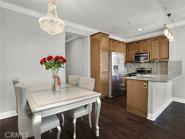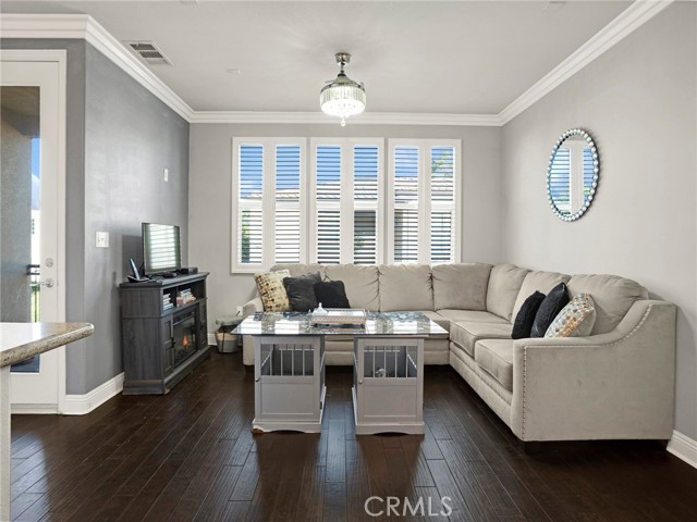 PORTER RANCH | Rare, updated waterfront unit in the coveted guard-gated Aldea community. This home is one of only a handful positioned in a serene setting, next to lush landscaping and soothing sounds of a cascading waterfall. From the moment you enter, the checkered tile flooring in the foyer sets a sophisticated tone. The first level features direct access to a 2-car garage, a dedicated laundry room with built-in storage, and a welcoming entryway. Upstairs, the layout unfolds beautifully, showcasing crown molding, hand-scraped hardwood flooring, plantation shutters and high-end light fixtures. To the right, a generously sized secondary bedroom and full bath provide comfort, privacy and flexibility. Straight ahead, the open-concept living space is drenched in soft, natural light and is a seamless blend of kitchen, dining, and family room that opens to a private patio. The kitchen is thoughtfully upgraded with granite countertops, stainless steel appliances, and abundant cabinetry. Privately tucked away at the far end of the home, the corner primary suite offers a peaceful retreat with mountain views. The fully remodeled en-suite bathroom features a spa-inspired shower, creating a luxurious escape, with endless hot water from the newer tankless unit. Living in Aldea means enjoying resort-style amenities: a sparkling pool, relaxing spa, BBQ area, and beautifully landscaped grounds. All this and just minutes from The Vineyards at Porter Ranch, top-rated schools, scenic hiking trails, and convenient freeway access. Don’t miss your chance to own one of Aldea’s rare waterfront gems — a true blend of luxury, location, and lifestyle.