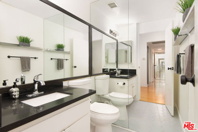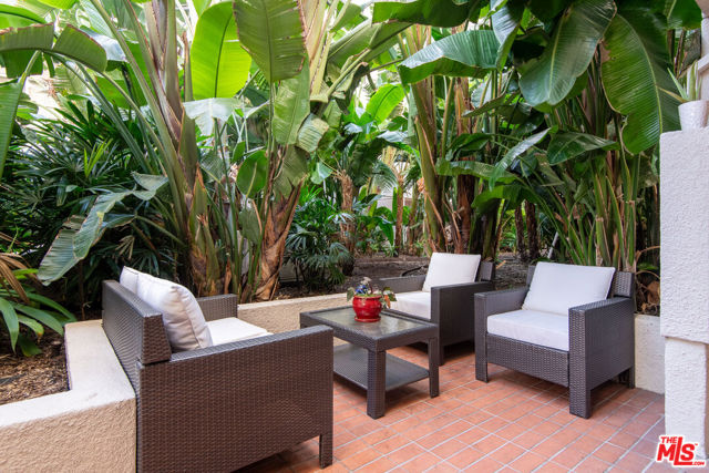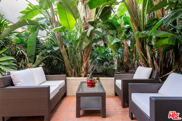 Fantastic south facing condo in the Park Wellington. This sunny one bedroom/1.5-bathroom condo features beautiful wood floors, designer finished bathrooms and a large outdoor patio that overlooks a lush and tropical courtyard setting. The building features 24-hour security, a saltwater pool, spa, tennis court, sauna, park/dog-run and a state-of-the-art fitness center. Close to all the best that West Hollywood has to offer!