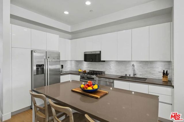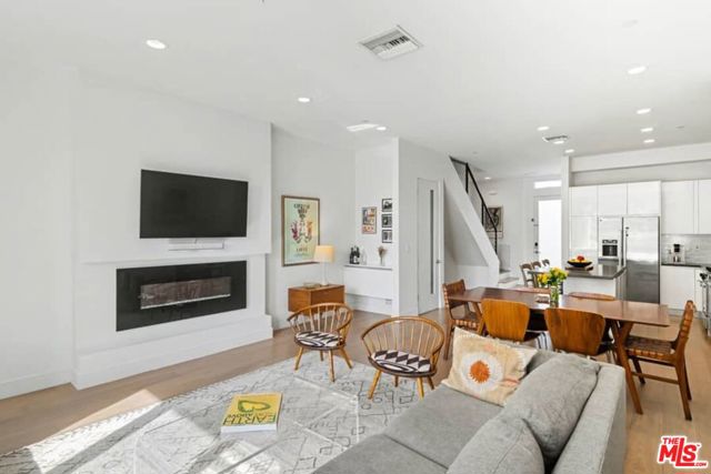 Rare Find in Mar Vista | National Modern Living Discover this exceptional opportunity in the highly sought-after National Modern Living community - a private collection of just 18 light-filled and forward-thinking townhomes. Located in the heart of Mar Vista, the home offers outstanding walkability to groceries, shopping, top-rated restaurants, and coffee shops. Positioned in the rear of the building, the residence provides added privacy, tranquility and peaceful living. Inside, enjoy two spacious bedrooms, each with its own en-suite bath, plus a generous family room featuring a fireplace and dramatic high ceilings. The gourmet, high-end kitchen opens seamlessly to the living and dining areas, creating an effortless flow perfect for entertaining and everyday living. Step outside onto your private patio, ideal for enjoying Southern California year-round. Smart home features include multi-zoned Nest thermostats, a Yale smart lock for keyless entry, and Google doorbell for enhanced security and convenience. Residents enjoy premium building amenities, including secure underground gated parking with two assigned spaces complete with personal EV charging, a clean and well-lit lobby entrance from the garage, a fully equipped fitness center, and large secure personal storage for each unit. Proudly located in the acclaimed Mar Vista Elementary School District, this modern gem delivers the perfect blend of luxury, convenience, and community.