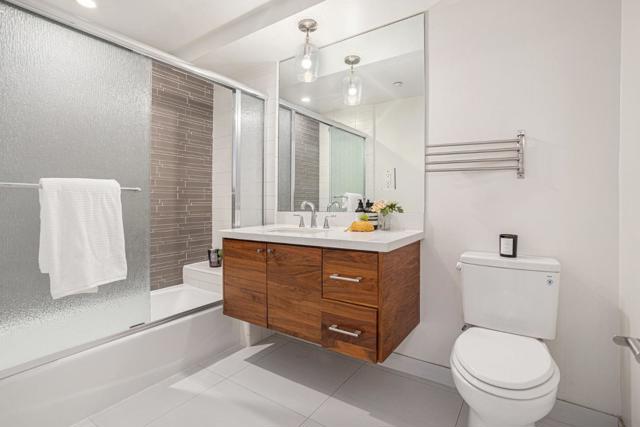 Stunning modern 2BR/2BA residence. Upon entering, you'll be welcomed by the beautiful porcelain flooring and high-end features throughout this spacious unit. Living room looks into the courtyard, allowing for a comfortable and peaceful environment. Enjoy the coziness of the gas starter fireplace in the living area. Cook in the state-of-the-art kitchen with professional grade appliances, custom cabinetry, designer fixtures, and Caesar stone counters. The unit's thoughtful layout includes two spacious bedrooms complimented by luxurious bathrooms and a walk-in closet in the master bedroom. Large common area roof deck and courtyard for socializing. Easy and private access to the residence. Deeded parking and covered garage included with the unit. Sellers used as a second home, special getaway, like new. Steps away from wide variety of restaurants, cafes, and boutiques that line Polk Street. Close to public transportation. For additional parking, there are two public parking structures a block away from the unit/building -- SFpark (corner of Polk & Bush; entry on Bush) and at 1101 Sutter (corner of Sutter & Larkin; entry on Sutter).