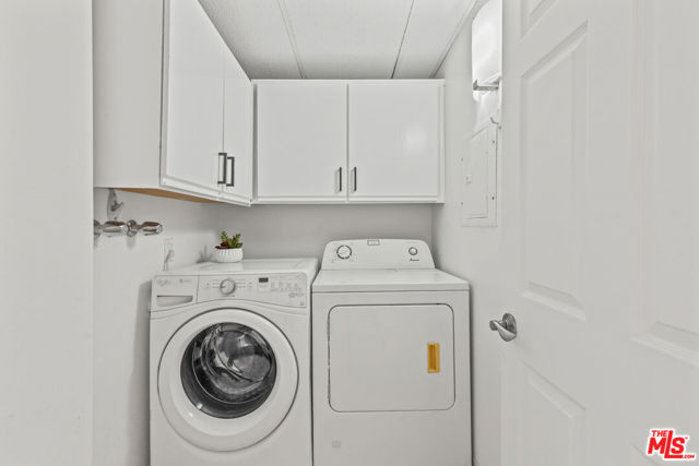Spacious 2 bed, 2.5 bath townhome-style condo in prime Brentwood location, just minutes away from restaurants, coffee shops and retail on trendy San Vicente Blvd. Located in a quiet corner of this contemporary condominium building, with lovely center courtyard pool surrounded by lush mature landscaping. As you enter you are greeted with the high ceilings and tons of natural light that make this home different from most condominiums. There is a powder room perfectly situated at the entry before you step down into the spacious living room with wood floors, soaring ceilings, romantic fireplace and wet bar, perfect for entertaining. The dining area opens to a patio to capture the cool breeze and is perfectly situated just off the kitchen. The laundry room completes the lower level. The upper level comprises the oversized primary suite with a second fireplace, large walk-in closet, and a spa-like primary bath with dual sinks, walk in shower, separate tub and skylights overhead. The second bedroom, full bathroom and loft area, which can be used as a home office, complete the upper level. Brand new carpets just installed on the upper level. Other building features include controlled access, airy courtyard walkways, 2 single parking spaces, additional storage and 11 guest parking spaces.