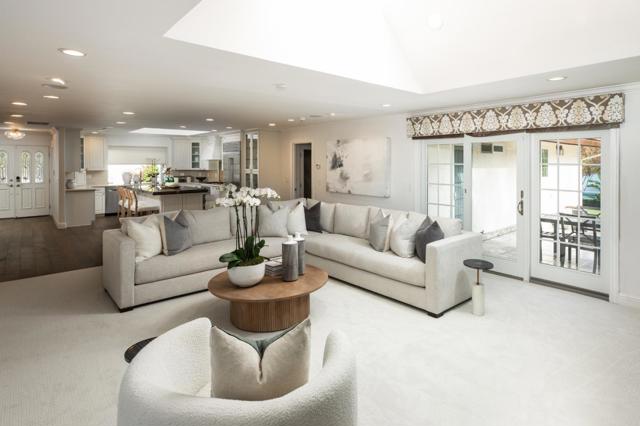 This understated estate is freshly updated while offering potential for future transformation. The secluded setting is approximately 1.28 acres at the end of a cul-de-sac with complete privacy and resort-inspired grounds that include a pool, spa, and fenced tennis court. The home spans one convenient level with just one elevation change to the vast formal living room. There is abundant natural light and a wonderful open flowing design between the formal rooms, kitchen, and family room. There are 5 bedrooms and 4 baths, plus an attached ADU with full kitchen, bath, and laundry for added versatility. All rooms are generously scaled and oriented to the expansive grounds with numerous terraces for outdoor living. A gated driveway enhances privacy, while the setting remains convenient to Highway 280, shops and dining at Rancho Shopping Center less than one mile away, and highly regarded Los Altos schools.