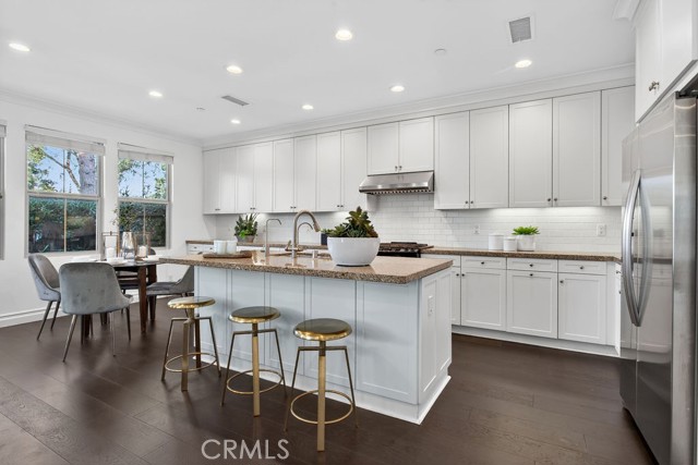 Welcome to your beautifully upgraded retreat in the coveted Stonegate Village—where thoughtful design, modern comfort, and resort-style living come together effortlessly. This immaculate 3-bedroom, 2.5-bath home spans 1,777 sq. ft. and feels bright, airy, and move-in ready thanks to fresh interior paint and brand-new wood flooring throughout, creating a clean, contemporary aesthetic from the moment you step inside. The main level showcases an open-concept floor plan that seamlessly connects the gourmet kitchen and spacious family room—ideal for entertaining, relaxing, and everyday living. The chef-inspired kitchen features high-end, energy-efficient appliances, generous prep space, and thoughtful finishes, along with premium upgrades including a whole-home water softener and a Reverse Osmosis water purification system, delivering crisp, clean water at every turn. Upstairs, all bedrooms are elegantly appointed, including a serene primary suite designed for true relaxation. The spa-like primary bathroom features a soaking tub with custom tile design, dual-sink vanity, and a tranquil ambiance that makes it easy to unwind after a long day. Outside your door, Stonegate offers one of Irvine’s most desirable lifestyles. Just a short stroll from Blue Ribbon Stonegate Elementary, you’ll also enjoy access to exceptional community amenities: sparkling pools, tennis courts, lush parks, children’s playgrounds, and a basketball court—ideal for staying active and enjoying the SoCal sunshine. Ideally located near Northwood High School, Jeffrey Open Space Trail, and Woodbury Town Center, this home offers convenient access to award-winning schools, scenic outdoor spaces, and premier shopping and dining. Freshly updated, perfectly located, and thoughtfully upgraded—this is more than a home; it’s a lifestyle. Don’t miss the opportunity to make this stunning Stonegate residence your own.