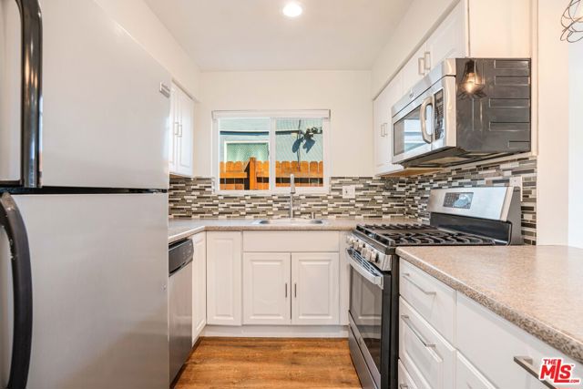 Experience comfort and style in this must-see front duplex unit. A secure gated entry welcomes you to a private patio, perfect for relaxing or enjoying your morning coffee. Step inside to an open-concept living area filled with natural light, seamlessly flowing into a modern kitchen. The stunning kitchen is equipped with stainless steel appliances, stylish cabinetry, a pantry, and a dedicated dining area. Both bedrooms are generously sized, featuring mirrored closets for added storage and brightness. The renovated bathroom showcases elegant finishes and a shower/tub combo for convenience. With thoughtful upgrades throughout, this inviting home offers a perfect blend of modern design and everyday functionality. Off-street parking included and opportunity for underground secured storage space. Please inquire. Close proximity to Space X, SoFi Stadium, LAX, major freeways, Intuit Dome, shops, restaurants, and so much more!