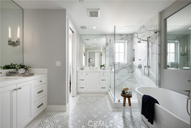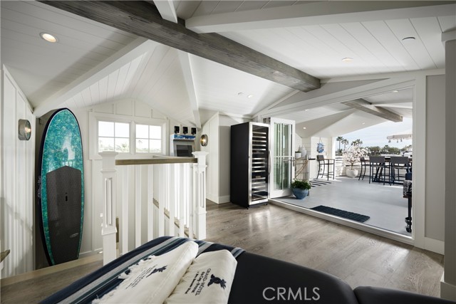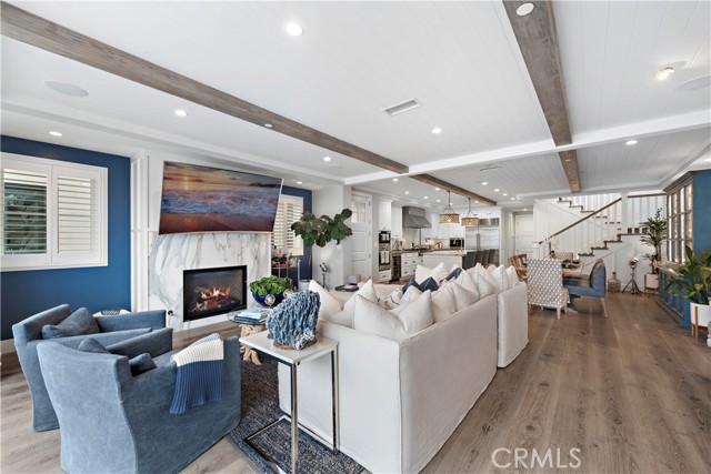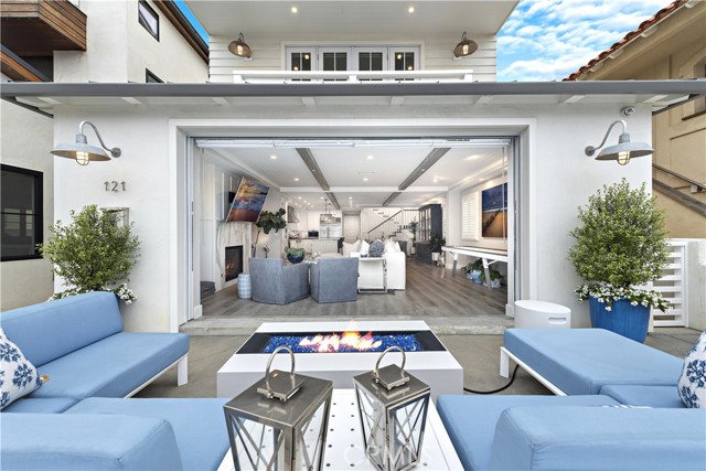 Just steps from the sand in one of Newport Beach’s most coveted locations, this impeccably upgraded coastal residence offers refined design, panoramic rooftop views, and effortless seaside living across three thoughtfully designed levels connected by an elevator. This home features 3 ensuite bedrooms plus a versatile office/optional fourth bedroom and 5 bathrooms, complemented by soaring 9-foot ceilings, rich oak flooring, and custom finish carpentry. Expansive sliding doors fill the home with natural light and create seamless indoor–outdoor flow, ideal for relaxed daily living or sophisticated entertaining. Two marble-clad fireplaces anchor the living spaces, adding warmth and architectural elegance. The entertainer’s kitchen is both functional and striking, featuring Sub-Zero refrigeration, a 48” Wolf range, double oven with steamer, built-in Wolf espresso machine, integrated wine refrigerator, custom cabinetry, and natural honed stone and Calacatta Borghini marble countertops with a statement mosaic marble backsplash. The upper level serves as a true indoor–outdoor retreat, opening to dual rooftop decks with sweeping views of the Pacific Ocean, Catalina Island, city lights, Fashion Island, and Saddleback Mountain. A covered entertaining area with built-in buffet, sink, and enclosed wine refrigerator, plus a private spa, provides an ideal setting for sunset relaxation or comfortably entertaining a large party in luxury. Additionally, the third level includes a bonus/flex room, perfect for a media room, gym, game room, or private lounge, offering extra versatility separate from the main living and bedroom spaces. Outdoor living continues with a welcoming front patio, custom fountain, and covered beach shower. Interior highlights include plantation shutters, custom window coverings, a thoughtfully designed office with built-ins and concealed storage, and a beautifully appointed custom closet in the primary suite. Additional features include surround sound, a security system with video surveillance, fire sprinklers, premium systems throughout, a two-car garage with custom cabinetry, epoxy flooring, and a Tesla charger, plus a rare additional carport space — a highly sought-after amenity in this beach-close location. Impeccably maintained and move-in ready, 121 41st Street blends luxury, comfort, and coastal lifestyle — ideal as a full-time residence or elevated beach retreat.