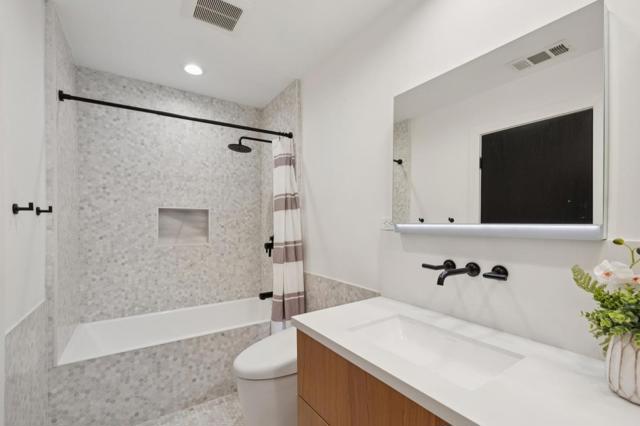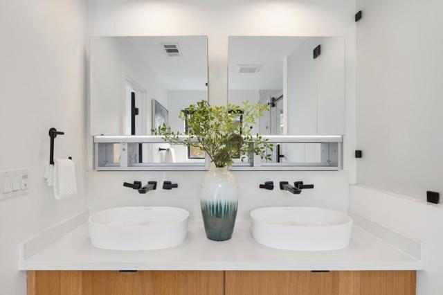 Extensively remodeled and thoughtfully expanded, this stunning Belmont home showcases luxury design, modern functionality, and breathtaking bay views. Featuring 3 bedrooms and 3 full bathrooms, including a spa inspired primary suite, the home also offers two additional bay view flex rooms ideal for offices, guest spaces, or creative use. White oak floors, LED lighting, skylights, and Kolbe dual pane windows fill the home with natural light, while smart features include Hunter Douglas motorized shades, Nest thermostat, cameras, and whole home prewiring. The chef's kitchen is equipped with Thermador appliances, Calcutta quartz countertops, a large island, Zip HydroTap system, and a wall of bi-fold doors creating seamless indoor outdoor living. The luxurious primary suite features a custom designed walk in closet and spa like bath with soaking tub, oversized shower, Robern mirrors, and TOTO Neorest system. Outdoor spaces offer patios, spa, and beautifully designed landscaping with lighting and mature plantings. Additional highlights include owned Tesla solar with two Powerwalls, EV charger, tankless water heater, and a finished two car garage with epoxy floors. Ideally located near parks, shopping, Caltrain, and top rated schools, this home delivers the best of Peninsula living.