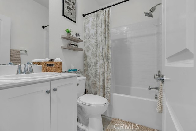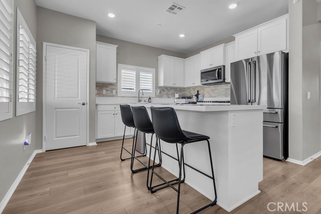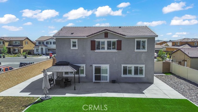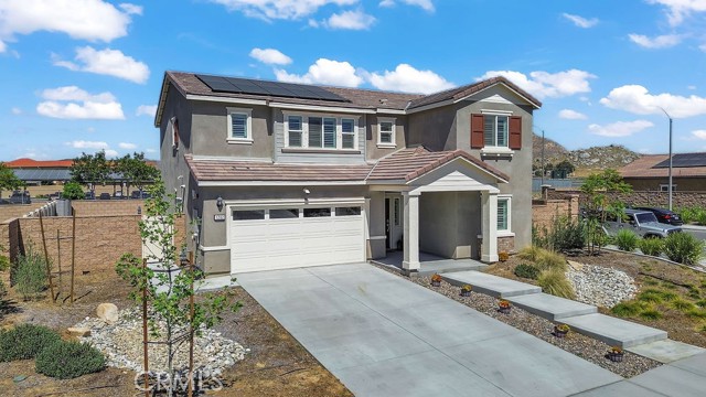 Welcome to this beautifully upgraded 4-bedroom, 3-bathroom home built in 2024, offering 2,336 sq ft of modern living with thoughtful upgrades throughout. Practically new, this home combines the benefits of new construction with added features already completed for you. From the moment you arrive, you’ll notice the clean curb appeal with cemented front steps, decorative rock landscaping, and defined cemented borders for a polished, low-maintenance exterior. Inside, you’ll find upgraded laminate flooring, freshly painted walls with stylish accent details, and a bright, open layout. The kitchen is enhanced with a sleek backsplash and a gas countertop stovetop, perfect for both everyday use and entertaining. All bathrooms feature water-resistant porcelain matte tile, while shutters on every window and custom shutter framing on the sliding door add a clean, cohesive finish throughout the home. Designed with comfort and efficiency in mind, this home includes a fully equipped smart home system with ADT security, smart locks, motion detectors, window and door sensors, flood sensors, and upgraded fire and carbon monoxide detectors. Enjoy central air with dual thermostats for both levels, a tankless water heater, and a built-in pest control system for easy maintenance. Step outside to a fully finished backyard with a cemented patio, side yard access, and artificial turf with pet-friendly drainage—perfect for relaxing or entertaining. The front yard also includes an irrigation system for added convenience. Additional highlights include a spacious loft, a mud room connected to the laundry area, and 14 fully paid solar panels for long-term energy savings. This move-in ready home offers the feel of new construction with upgrades already done—saving you time, money, and effort.