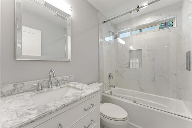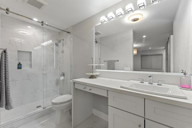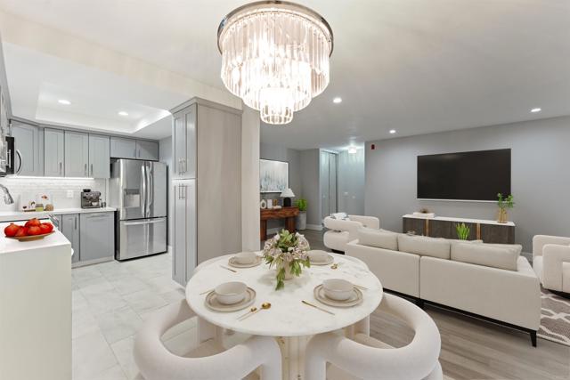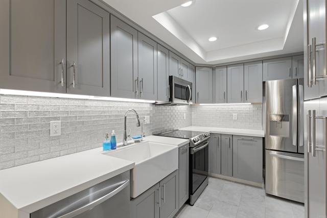 Welcome to this luxury coastal gem just one block from Beacon's Beach located within a gated community! This beautifully fully renovated 2 bedroom, 2 bathroom, spanning over 966 square foot home offers a spacious and functional layout that’s truly a must-see situated in an unbeatable location. Beautifully remodeled throughout in 2021 with high-end materials and designer finishes, the home features all new 3M tinted double-paned windows and sliding glass doors (for privacy and natural lighting), custom Veneta blinds, kitchen includes a Sinkology farmhouse sink, custom shaker cabinetry with soft-close doors, porcelain tile floors throughout kitchen and dining room, top of the line kitchen appliances (all new and installed in 2021 during renovation), Kohler and Grohe fixtures, polished porcelain Carrara tiles, Italian marble vanity in guest bathroom, Brazilian bamboo wood flooring, Century Starphire ultra-clear sliding shower glass doors in bathrooms and custom built-in closets. In addition, LED canned lighting and all chandeliers were added throughout, all new copper plumbing, all new electrical wiring and subpanel box with emergency shut-off for HVAC - emergency shut-off installed all to code. The thoughtfully designed layout offers both space and functionality with ample storage throughout plus additional patio storage. Enjoy the convenience of two assigned parking spaces (one covered, one uncovered) and access to EV charging within the community. Ideally located within walking distance to local restaurants, coffee shops, Farmer’s Market and just moments from Beacon’s Beach, Moonlight Beach and Grandview Beach. This is coastal living at its finest.