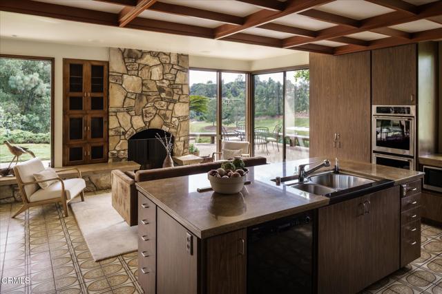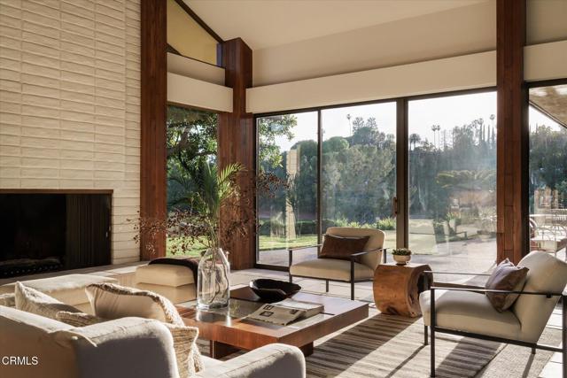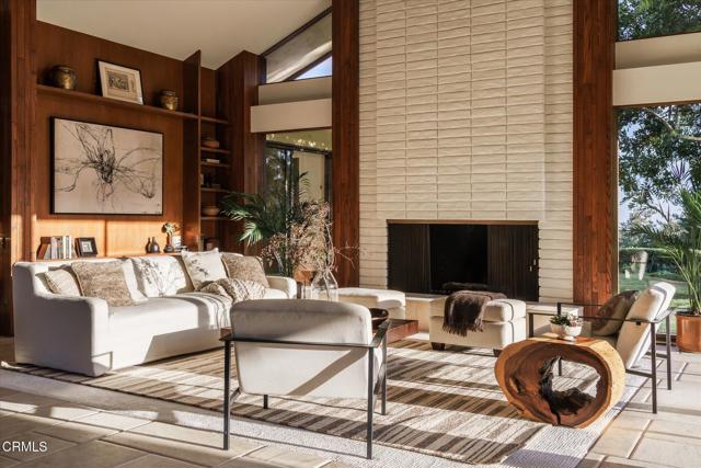 Set dramatically on a hillside overlooking the fairways of Annandale Golf Club, this sophisticated 1970s contemporary commands attention from the moment of arrival. Oversized double doors open to a striking living room defined by soaring vaulted ceilings and expansive walls of glass that seamlessly dissolve the boundary between indoors and the sweeping golf course vistas beyond.At the heart of the home, a sculptural fireplace anchors the living space, while limestone floors provide a timeless, grounding element. Elevated ceilings continue throughout, creating an airy, light-filled atmosphere in every room.The primary suite is a true retreat--generous in scale and serene in character--featuring its own fireplace, custom built-ins, a spacious en suite bath, and oversized walk-in closets.The kitchen connects effortlessly to a warm, inviting family room, where a third fireplace is framed by windows that capture picturesque views of the lush grounds and fairways below.The home offers three bedrooms and two baths, including a secondary en suite bedroom with a large walk-in shower. The third bedroom, currently styled as an office, can be easily converted to suit a variety of needs.Complete privacy, ample parking, and a two-car garage enhance the sense of retreat. Recently updated with a brand new roof and fresh interior and exterior paint, the home is ready for its next chapter with both style and peace of mind.
