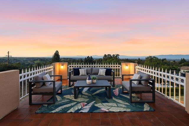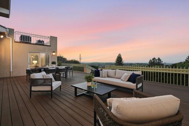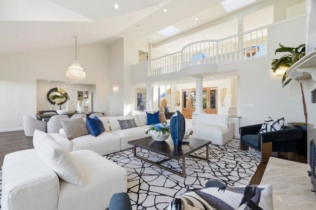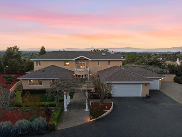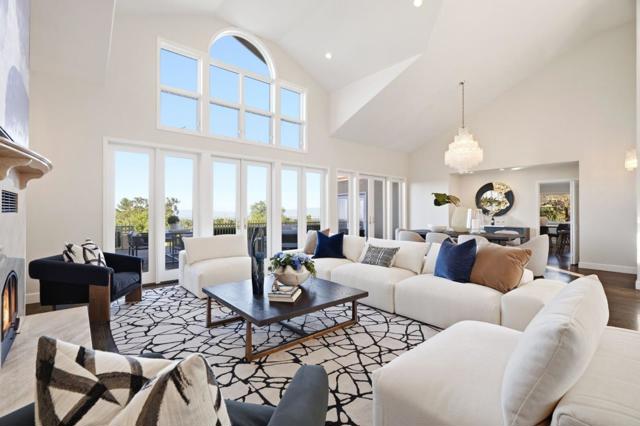 Tucked away on a private road on just over an acre, this Los Altos Hills estate offers jaw-dropping views to the San Francisco Bay. Nearly 4,500 sq ft over two levels balances grand scale with an inviting atmosphere. Soaring ceilings, rich wood floors, and glittering chandeliers complement luxurious finishes, creating a home both elegant and livable. A dramatic wall of windows in the living and dining rooms frames the vistas, while the quartz-appointed kitchen with Wolf and Bosch appliances opens to a spacious family room for entertaining or relaxing. Five deluxe bedrooms include a palatial primary suite with private balcony and spa bath. Outdoors, an expansive deck, sparkling pool, and lush lawn showcase the views. Highlights include an office, air conditioning, 2-car garage, and covered carport. Minutes from trailheads, nature preserves, and downtown Los Altos, the home is served by the highly sought-after Palo Alto school district (buyer to verify).