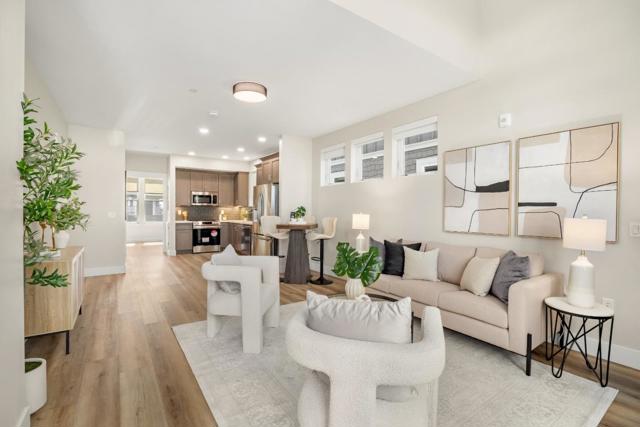 The final available end unit in Building 8 boasts what we consider the premier ocean view of Phase 2; on clear days, your view extends down to the palm trees and surf at Seacliff Beach. The modern, flexible layout features 2 bedrooms, 2 bathrooms, and a spacious loft. The private primary suite offers expansive views, a private balcony, and a walk-in closet. Every detail is curated for comfort, including multi-zone split ductless HVAC for heating and cooling and a single-car garage for secure parking and storage. This home comes move-in ready at no additional premium, featuring a full suite of stainless steel kitchen appliances, a washer/dryer, and window coverings. Located in the heart of Aptos Village, you are steps from artisan shops, cafes, and gourmet markets. Nature enthusiasts will love being within walking distance to miles of hiking and biking trails in the Forest of Nisene Marks. Seacliff and Rio Del Mar beaches are just minutes away. Inquire about exclusive financing through our preferred lender to secure a 4.99% rate on a 30-year fixed mortgage. Don't miss this final opportunity for a Phase 2 end unit with unbeatable views.***Some Photos are of the staged, model unit. Same floorplan, but mirror image ***