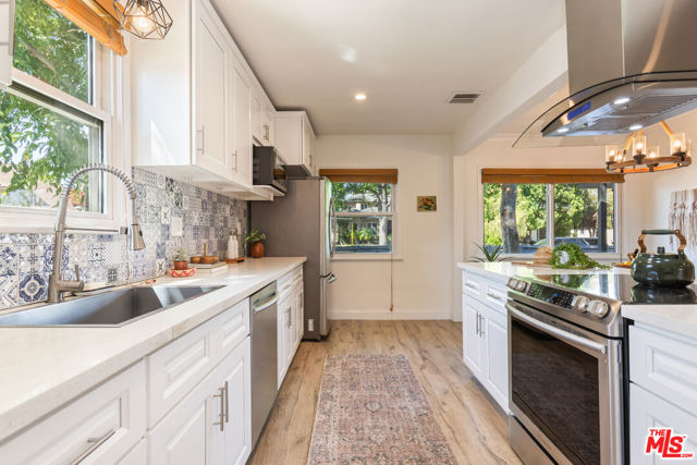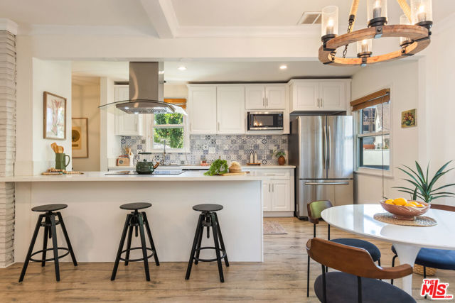 This bright and charming 3-bedroom, 2-bathroom Valley Glen home has been thoughtfully cared for, with plenty of meaningful updates throughout. The open living space flows easily, with a formal dining room featuring exposed beams and French doors that open out to the pool and spacious backyard. The kitchen is clean and modern, with quartz countertops and stainless steel appliances. The interior has been freshly painted, along with the front porch and fence, giving everything a crisp, move-in-ready feel. Out back, the yard is set up for classic Southern California living. The pool and spa were remodeled in 2023 with a new heater and pump, and the turf, drip irrigation, and sprinkler system keep maintenance simple. And there's plenty of yard space for entertaining. Some of the bigger updates are already done for you, including a newer HVAC system (2022), newer ceiling insulation and updated ductwork, a water circulator, an EV charger, and fully paid-off solar panels installed in 2023. Close to the 101 and 405 freeways near Erwin Street Elementary (9/10 on Great Schools), this home offers a location that keeps every day living convenient and accessible.