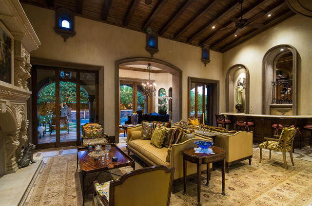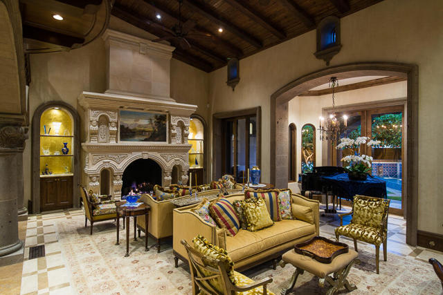Nestled along prestigious Clancy Lane in the exclusive guard-gated enclave of The Renaissance, Casa Bella is a majestic Mediterranean estate that defines luxury living. Built in 2012 by world-class builder Al Durrett and designed by renowned architect Juan Carlos Ochoa, this exceptional residence showcases uncompromising craftsmanship and exquisite custom details throughout. The estate offers a collection ofrefined living spaces including formal living and dining rooms, a library, game room, privatetheater, wine cellar, and a gourmet kitchen seamlessly connected to both interior andexterior family rooms. The primary suite is a sanctuary with dual spa-inspired baths and spacious walk-in closets. Additional accommodation includes two family bedroom suites, a two-bedroom guest house and two executive offices. The resort-style grounds are equallyimpressive, featuring expansive loggias, an outdoor kitchen, firepit, mosaic-tiled pool,amphitheater and a private 9-hole putting green. Completing the estate are an elevator to an executive office and a five-car garage, creating the perfect balance of elegance, comfort, and entertainment. Property is being sold furnished per inventory.