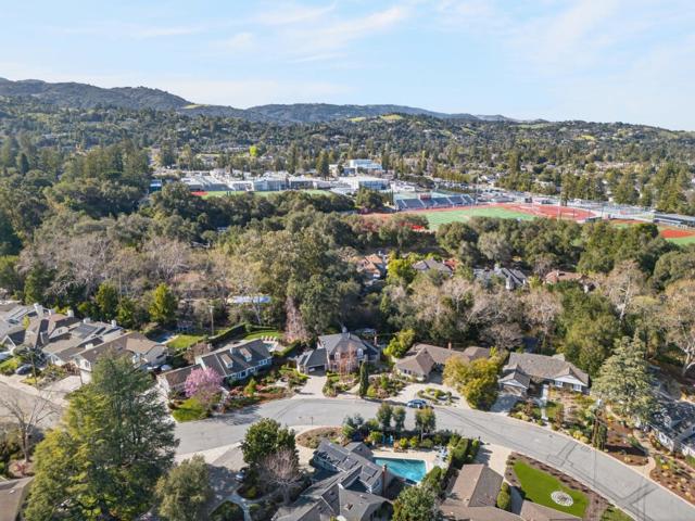 Nestled in Saratoga's coveted Golden Triangle, this charming two-story home offers the perfect blend of warmth, elegance, and everyday functionality. Located within the acclaimed Saratoga school district, it combines a highly sought after setting with timeless character. Beautiful curb appeal welcomes you, highlighted by a Jane Magnolia tree and mature landscaping. Inside, the home opens to a formal living room filled with natural light and anchored by a cozy fireplace. From there, doors lead to a private home office ideal for remote work or study. The layout then unfolds into the heart of the home: a chefs kitchen with top-tier stainless steel appliances and custom cabinetry. A dining nook offers the perfect spot for casual meals, while the formal dining area is designed for special gatherings. From here, the family room, with expansive views of the backyard, creates a relaxed and inviting atmosphere. The first-floor primary suite serves as a peaceful retreat, complete with pool views and a spa-inspired stone bathroom. Upstairs, three additional bedrooms and a versatile space provide flexibility for family, guests, or hobbies. Designed for both entertaining and everyday living, the backyard features a sparkling pool and spa, outdoor dining and lounge areas, and a lush lawn.