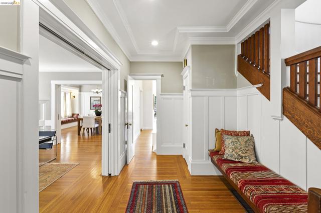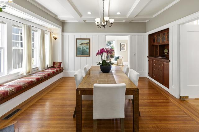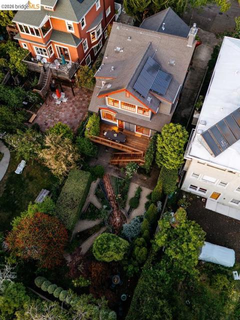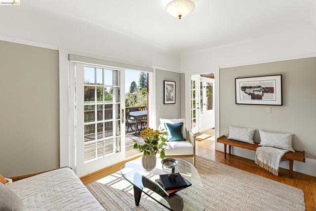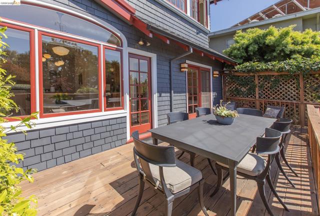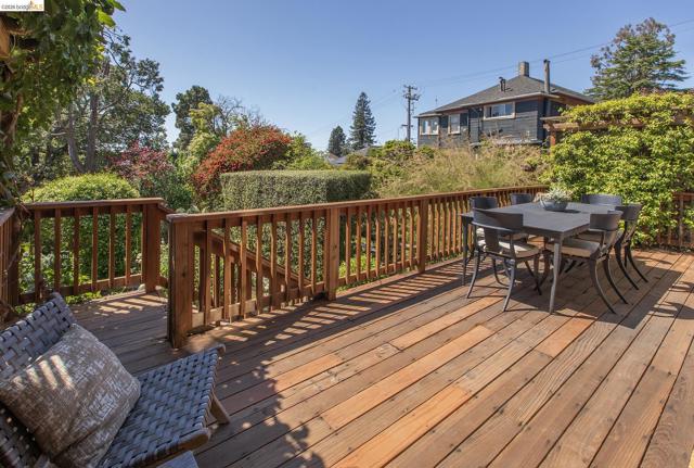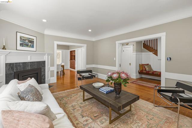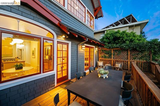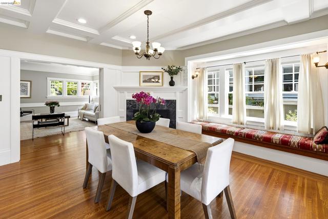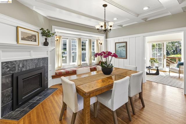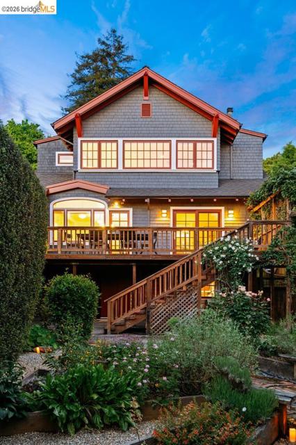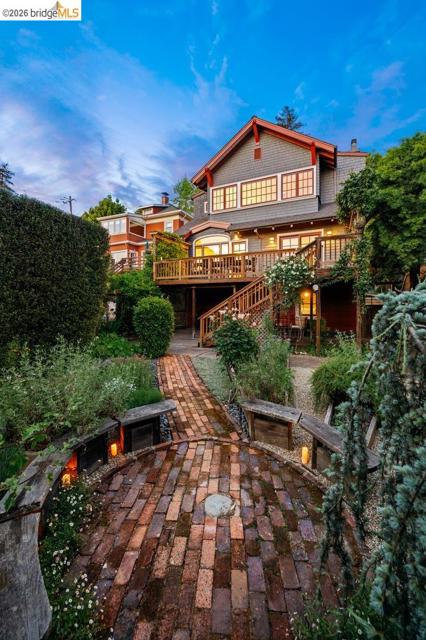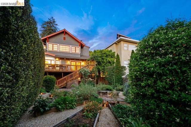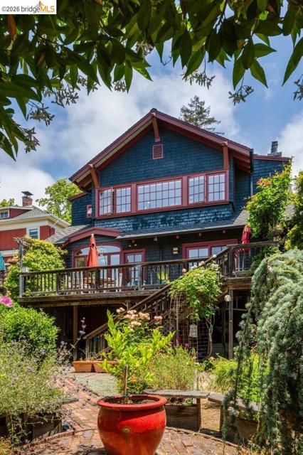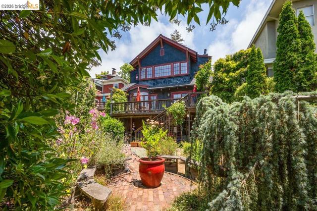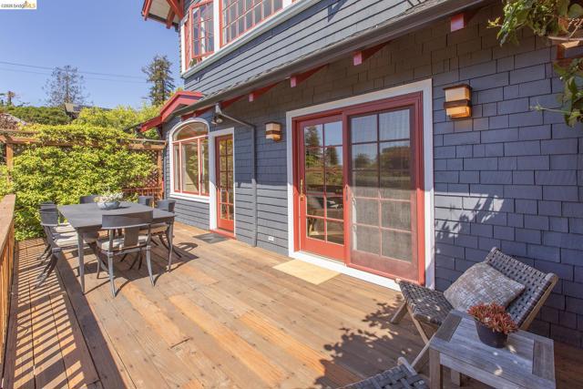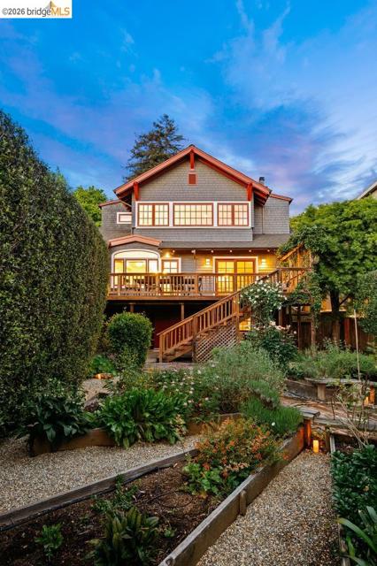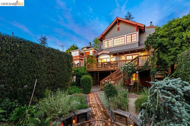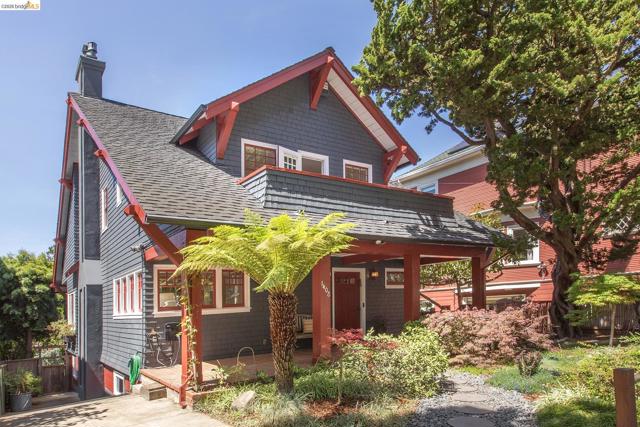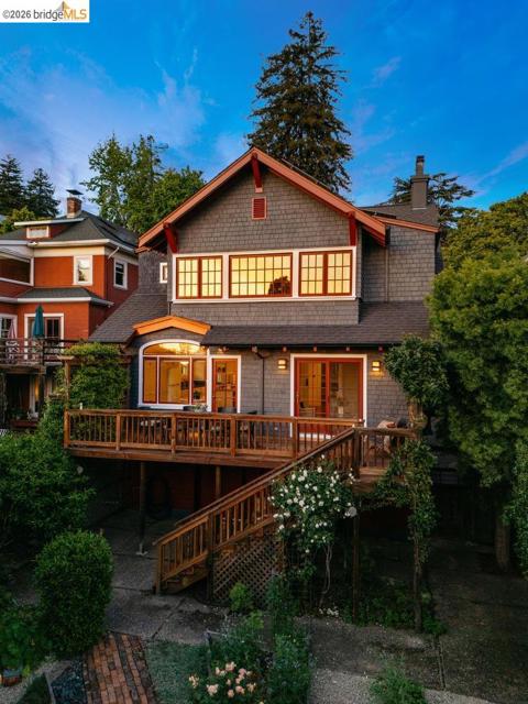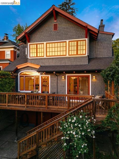 This elegant 1909 Arts & Crafts home in desirable North Berkeley blends vintage character with modern comfort, Bay views, and seamless indoor/outdoor living. Featuring 3 bedrooms and 2.5 baths, the sun-filled interiors include a gracious living room with gas fireplace, formal dining room with gas fireplace, built-in seating & cabinets, family room and an updated sun-kissed kitchen with breakfast area opening to a spacious deck and landscaped backyard with beautiful garden beds and fruit trees. Upstairs offers a generous primary suite with Bay views, radiant-heated bathroom floor and walk in closets, a generous hall bathroom & 2 other bedrooms. Additional highlights include balcony off the east bedroom, original details, and updated heat pump/AC (2024). The expansive basement with conforming ceiling height and garden access offers excellent potential. Ideally located near the North Berkeley Gourmet District, including Chez Panisse, Cheese Board, plus parks, pathways, and BART. Home Energy Score of 7.