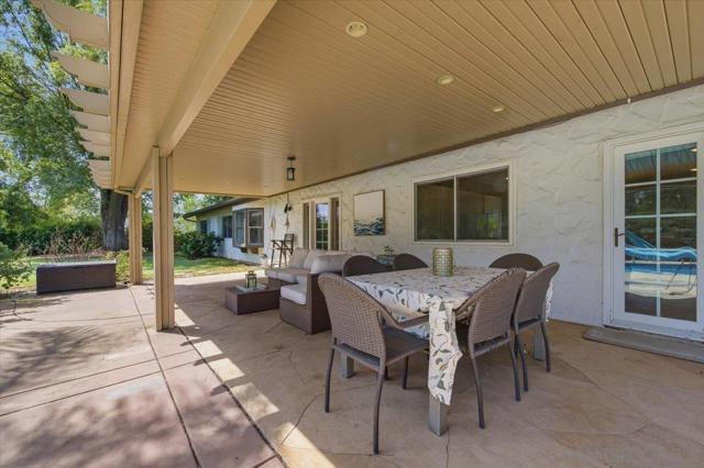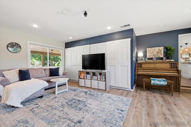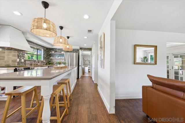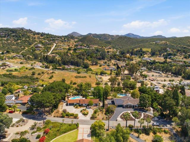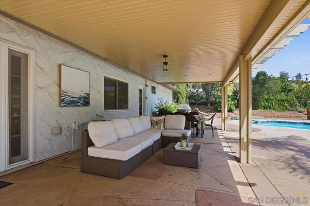 Experience the perfect blend of rustic charm and expansive outdoor freedom at Hacienda Solstice Ranch, a reimagined estate that defines the private Poway lifestyle. Perched on a massive, fully usable 1.08-acre lot at the end of a quiet cul-de-sac, this property offers rare scale and versatility, complete with a pool and raised spa, dedicated horse facilities, and breathtaking mountain views. The home greets you with a sprawling circular driveway, providing ample room for RV or boat parking alongside a two-car garage. Inside, the residence features a thoughtful "dual-wing" layout that separates social spaces from private retreats. The kitchen is anchored by a massive central island, Zellige tile backsplash, and quartz and granite countertops. One of the home's most charming features is the cozy bay window seating, perfectly positioned to watch the sun dip behind Twin Peaks at sunset. The interior flow is seamless, leading from the fireplace-anchored living room to a dining area with beamed ceilings and French doors out to the covered patio. For those who love to host and gather, the huge bonus living room, complete with a half-bath and direct pool access, provides the ultimate indoor-outdoor transition. The private wing of the home features three light and airy bedrooms, including a primary suite with a large walk-in closet and an updated ensuite with a walk-in shower. Modern infrastructure adds peace of mind to the Hacienda Solstice lifestyle, including fully owned solar panels (2016), a whole-house water filtration and softening system (2023), and smart home technology like the Ecobee thermostat and MyQ garage system. The true magic of this estate lies in its tiered outdoor oasis, where the acre of land is cleverly divided into distinct lifestyle zones. The expansive primary tier is a dedicated entertaining paradise, featuring a saltwater-ready pool with a diving board and slide, a raised jacuzzi positioned for maximum mountain-view impact, and a lush, manicured turf area with a firepit for stargazing. The second tier offers a "farm-to-table" retreat shaded by a majestic Pepper tree, featuring raised garden beds, fruit trees, and a functional chicken coop. The lower portion of the property is a dream for hobbyists or horse lovers, complete with existing equestrian infrastructure with pipe stalls, a wash station, a tack room, and two additional storage sheds, one of which is equipped with power for a potential workshop. Whether you are looking for a ready-made horse property, a premier entertaining venue, or simply the quiet seclusion of a full, usable acre with a view, Hacienda Solstice Ranch delivers it all.