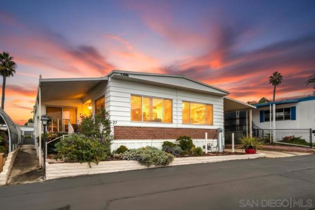 Located in the desirable 55+ community of Villa Novia, this double-wide home offers comfort, convenience, and a vibrant lifestyle at the base of scenic Mt. Helix. NO SD COUNTY PROPERTY TAXES!! Featuring 2 bedrooms and 2 bathrooms, this spacious residence has some recent upgrades include new flooring, exterior paint with Coolwalls by Texaco, freshly painted interior and exterior California room walls, a new AC and heating system, new washer and dryer, new water heater, and new microwave. Enjoy refreshed spaces with new blinds in the living room, master bedroom, and California room, plus refurbished dual sinks in the master bath, chain-link fencing with gate, and a walkway along the side of the home — perfect for easy access and privacy. The Villa Novia community offers Pool, RV parking, and a welcoming community center for social gatherings. Quietly tucked off Chase Avenue in El Cajon, this move-in ready home combines peaceful living with convenient access to shopping, public transportation, dining, and local amenities.