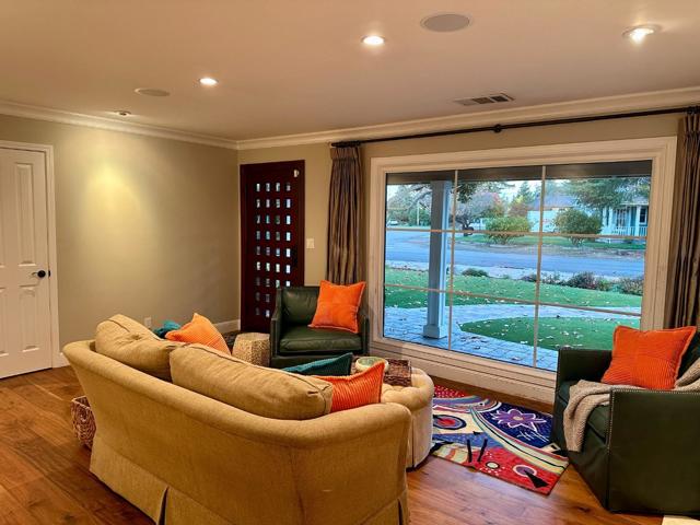 Stunning 5 bedroom 4 bathroom Cambrian Park home offering approximately 3,509± SF on a spacious 15,000± SF lot. The gourmet kitchen features quartz countertops, custom cabinetry, expansive island, GE Monogram 6-burner range, Sub-Zero fridge, and wine fridge. Generous living spaces include a formal dining room, great room with multiple sliders to the backyard, family room with surround sound, and a separate living room with fireplace. The luxurious primary suite boasts dual walk-in closets, jetted tub, shower, and direct outdoor access. The upstairs retreat includes a bedroom, full bathroom, and living room, perfect for guests or extended family. Outdoor paradise with solar-heated pool/spa, travertine decking, large turf play area, fire pit, and outdoor dining. Energy-efficient upgrades include photovoltaic solar, tankless water heater, dual-pane windows, and new Lennox HVAC with ductwork. Garage offers epoxy floors, storage, Tesla EV charger and separate JuiceBox EV charger. Prime location near great schools, shopping, dining, and commute routes. This home is offered partially furnished with stylish custom pieces. Enjoy integrated Sonos sound throughout, and whole-house water filtration.