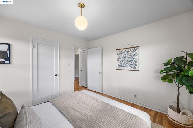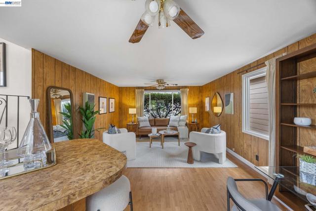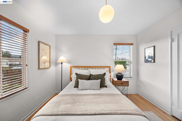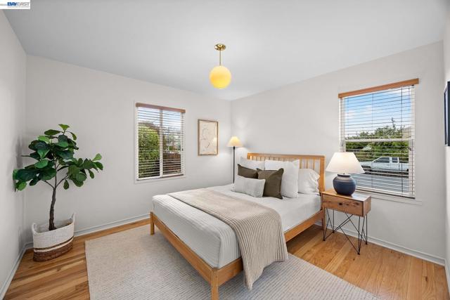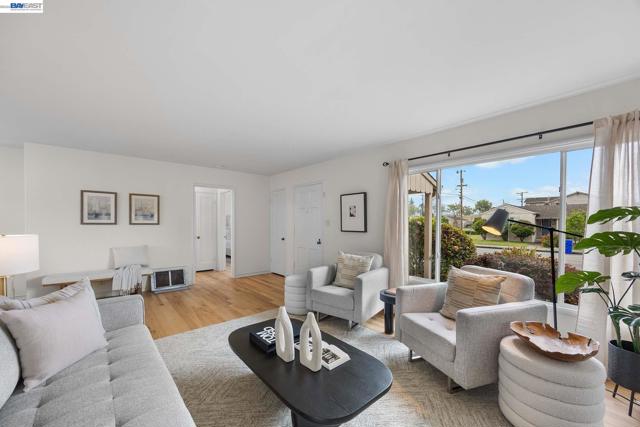 This beloved family home is available for the first time in 70 years. It’s no wonder the owners held onto this gem, w/ its unbeatable location for convenience and walkability. A short stroll brings you to Jefferson Elementary, the post office, favorite restaurants, and essential shopping. Toyon Park - a neighborhood treasure for kids, dogs, and gatherings - is a stone’s throw away, giving you everyday access to open green spaces, a playground, picnic tables, and bocce ball. Plus, this home is a dream for your commute, w/ a bus stop to BART and Oakland just steps away, and a quick hop to 580 and 880. Set on a generous 7,000 sf corner lot, your new home greets you w/ colorful roses in the front yard. Inside, your cozy sanctuary spans 1,569 sf, w/ 3 bedrooms, 1 bathroom, a spacious eat-in kitchen, and a large family room that features a wet bar and space for a work-from-home office. This home is ready to impress from day 1, thanks to its freshly painted interior, refinished hardwood floors, and new laminate floors in the kitchen and 3rd bedroom. Imagine opening a sliding glass door to your big backyard w/ a mature apple tree and ample space for playing and gardening. Important updates like earthquake bracing and dual-pane windows will also give you peace of mind. This is the one!