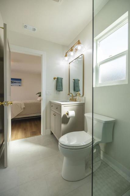 Renovated homes are nothing new in Seaside, but 1460 Mescal Street stands out. Set in arguably Seaside's most coveted neighborhood, in a sunny, walkable enclave, this property offers a rare combination of privacy and space, with no neighbor to the left or behind and a lot of over a quarter acre. Recent exterior improvements include concrete work, a new driveway, a front retaining wall, and floating concrete steps. Inside, LVP flooring runs through the living room and bedrooms, while large-format tile finishes the kitchen and bathrooms.The kitchen features warm wood cabinetry, marble countertops, polished brass hardware, and all-new stainless steel appliances. The open layout flows into the dining area, where a stacked stone fireplace with a wood mantel creates a focal point. The bathrooms continue the homes polished aesthetic, including an updated shower finished in glossy seafoam green tile with warm brass fixtures. Beyond being move-in ready, the property also offers room to grow and shape the outdoor space thanks to the lot size and usability. With municipal water service, that flexibility becomes even more valuable. This combination of renovation, privacy, lot size, and potential rarely comes available in Seaside's Upper Broadway neighborhood. Come see it before it's gone!