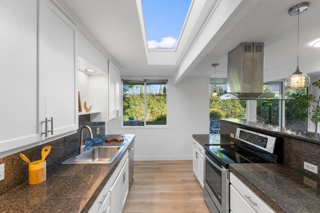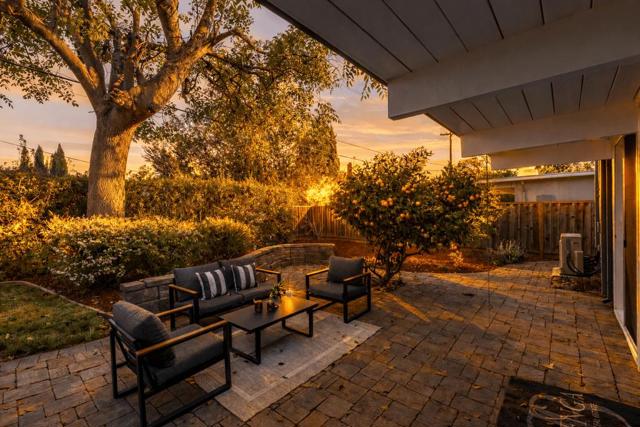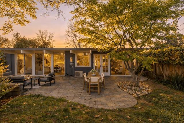 Beautifully remodeled Eichler in the highly desirable Panama Park neighborhood, showcasing classic mid-mod architecture with walls of glass that seamlessly connect indoor and outdoor living and fill the home with natural light. Recent upgrades include LVT flooring, designer paint, updated lighting, heat pumps, dual-pane glass, and remodeled kitchen and baths. The stylish kitchen features granite countertops, custom cabinetry, s/s appliances, a skylight, and an island open to the dining area, perfect for entertaining. The living room offers dramatic floor-to-ceiling windows and a signature brick fireplace & french doors to patio. Eichler details include tongue-and-groove ceilings and multiple skylights, complemented by energy-efficient mini-split systems. The spacious primary suite features a walk-in closet and remodeled bath, while the hall bath has been updated with a newly tiled shower. Indoor laundry adds convenience. Professionally landscaped yard with interlocking brick hardscape and drought-tolerant planting plus classic indoor-outdoor California living. Prime location near Panama and Ortega Parks, with easy access to shopping, dining, Town Center, tech campuses Apple, Google & 280, 237 & 85. Top Cupertino schools: Stocklmeir Elementary, Cupertino Middle, and Fremont High.