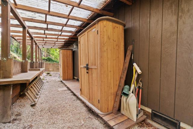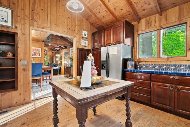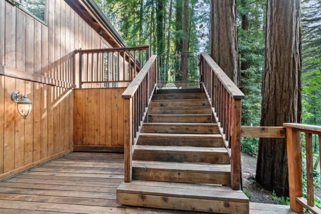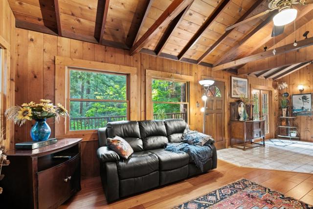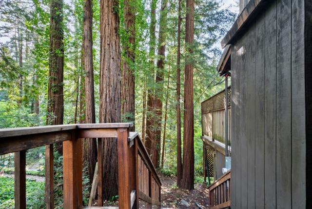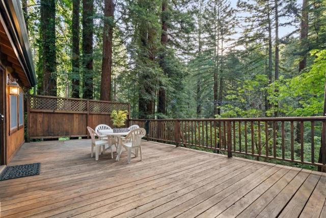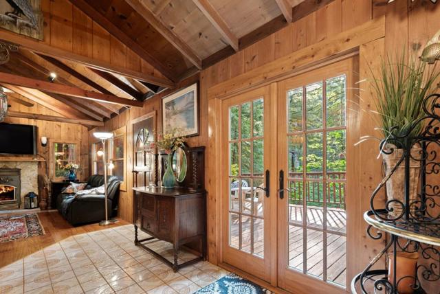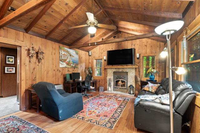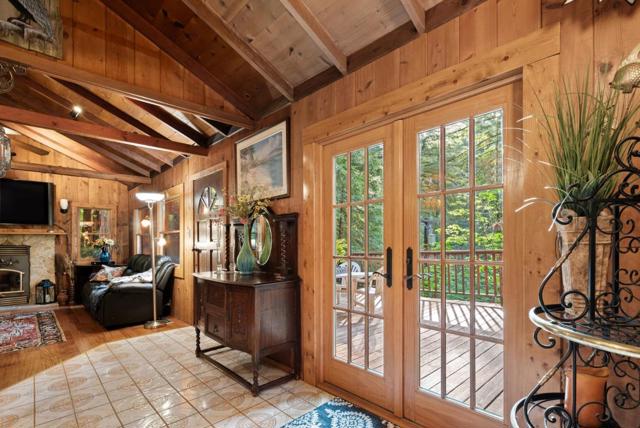 Welcome to 15101 Two Bar Rd a storybook 2-bedroom, 1-bath home on a 0.61-acre lot in Boulder Creek. This 1,412 sqft retreat blends classic Santa Cruz Mountains character with thoughtful modern upgrades. An oversized deck greets you as you arrive, ideal for morning coffee under the redwoods or evening entertaining. Inside, enjoy a cozy wood-burning fireplace insert for cool mountain nights. The kitchen features a gas stove with all appliances included, and the updated bathroom offers soft-close cabinetry and a heated towel warmer. A dedicated office with attic access provides flexible work-from-home or storage options. Recent improvements include a new gas furnace, gutters, and an upgraded electrical panel with a 220V circuit ready for a hot tub. The roof and septic system have both been recently inspected and are in good condition. The lot offers room for RV parking and entertainment. Terraced gardens feature a curated mix of trees, flowering plants, and blueberry bushes on drip irrigation, plus a garden shed, outdoor structures, and storage below the home. New carpet in both bedrooms adds comfort, and the main bedroom opens to a private deck where you can step directly into nature. Tucked into the redwoods with serious charm, practical upgrades, and rare acreage, a must see!