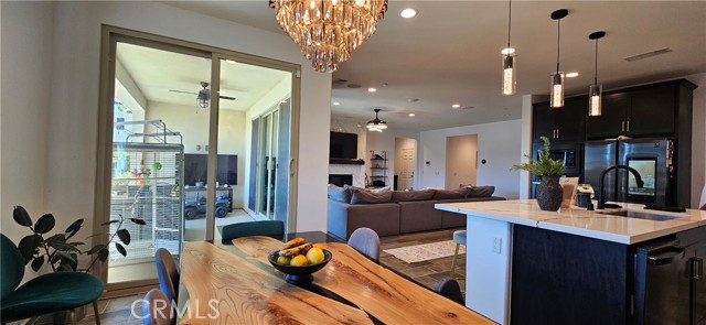 Introducing 1512 Yucca Ct in beautiful Calimesa — a multi-generational Single Story home built in 2021 with 3 BD, 2.5 BA, and a flex room. Perched in an elevated setting, this home captures unobstructed panoramic mountain views, open skies and evening lights to enjoy everyday! Even better — this home comes equipped with PAID SOLAR, providing long-term energy savings & protect you from rising electricity costs. Combined with EV charging capability in the garage, also offers the perfect blend of sustainability, convenience, and energy savings for homeowners. Step inside to an open-concept floor plan, with brand new Luxury Vinyl flooring, designed to feel both elegant and welcoming. Expansive windows and sliding glass doors frame the stunning views while filling the home with natural light. The inviting gas fireplace creates a warm focal point for gatherings or quiet evenings. Just off the main living area, a flexible entertainment space provides endless possibilities—whether you envision a billiards lounge, wine room or a home office. The gourmet kitchen is the heart of the home, beautifully appointed with quartz countertops, an upgraded built-in range, custom cabinetry, designer lighting, and a spacious walk-in pantry. It flows effortlessly into the dining and great room areas, perfect setting for hosting family celebrations & dinner parties. The great room opens to a covered patio, seamlessly blending indoor and outdoor living. The expansive 11,761 sq ft lot is surrounded by flowering plants and fruit-bearing trees, offering plenty of space to relax, entertain, or envision future possibilities such as a pool, private garden retreat, or ADU (buyer to verify). The primary suite feels like a private sanctuary with spa-inspired bathroom featuring dual quartz vanities, upgraded cabinetry with elegant brass hardware, a soaking tub, a separate glass-enclosed shower —creating a calm and restorative space to begin and end your day. Secondary bedrooms are bright, spacious, and versatile for guests or family members. The secondary bathroom continues the home’s refined design with a dual-sink quartz vanity and modern fixtures, offering both style and everyday functionality. Nearby schools, parks, and community amenities make daily living convenient, while the quiet cul-de-sac setting adds an extra sense of privacy and comfort for families. Come experience the views, the comfort, and the lifestyle — and imagine calling this exceptional home your own.