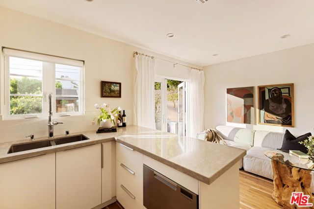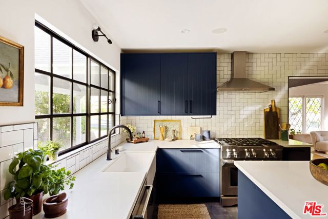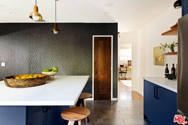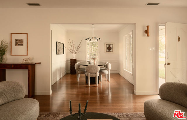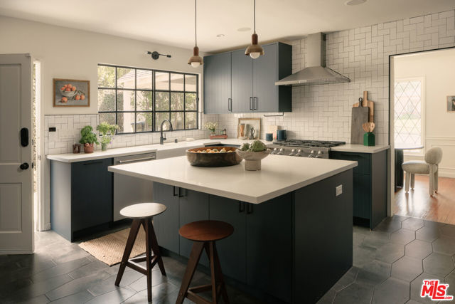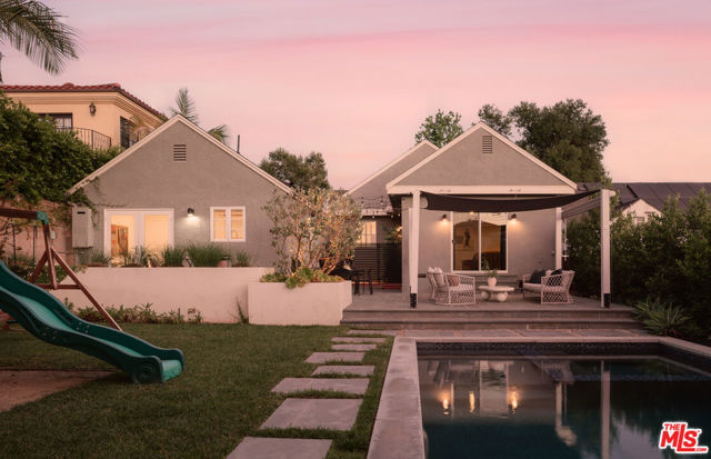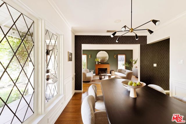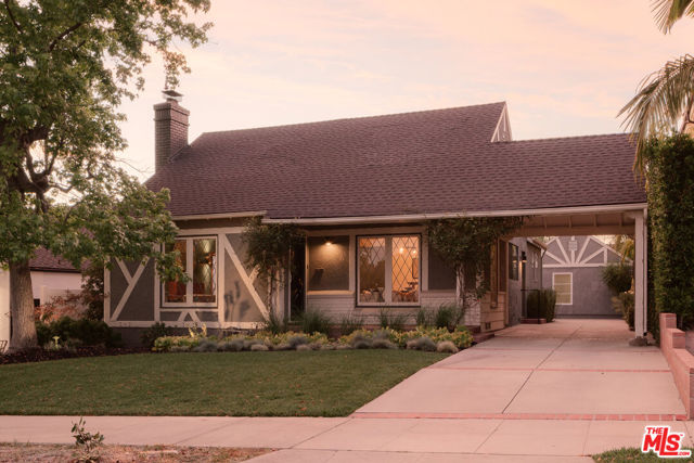 Set in prime Northwest Glendale, where the Verdugo Mountains rise dramatically as a natural backdrop, this Tudor residence offers a distinct sense of place: quiet, grounded, and deeply connected to the landscape around it. Behind its classic facade, framed by original diamond-pane leaded glass windows, the home captures light in a way that feels both timeless and quietly elegant. Inside, nearly 2,000 square feet unfold across a single level, where original hardwood floors and high ceilings establish warmth and architectural integrity, while thoughtful updates bring ease to everyday living. A porte-cochre, handcrafted sconces and custom built in shelving and desks further underscore the home's enduring character. The oversized living room centers around a wood-burning fireplace with a custom walnut mantel with a Mission West tiled hearth, a warm focal point that carries into the formal dining room. The layout is both open and defined, with expansive rooms, clear sightlines but with moments of separation allowing for space to gather or have space. The kitchen, designed by 1000X Better, is generous in scale and thoughtfully executed. Caesarstone surfaces, a large pantry, Quercus & Co wallpaper, large island, lots of light & ample storage create a space that is elevated, functional, and inviting. Bathrooms and bedrooms, updated by designer Stacey Copeland, introduce a refined sense of play through pattern and texture including Hygge & West wallpaper, original built-ins & high-end design while maintaining the home's timeless character. Primary suite is notably spacious, with a large walk-in closet, en suite bath with oversized shower & sliding glass doors that open to a natural stone patio, pool, spa and landscaped yard. Outdoors, the home truly expands: covered patio, built-in dining area under cafe lights, kids play structure, Schoolhouse sconces, large grassy area, decomposed granite areas create space for gathering, play, and relaxation. A large Liquidambar tree shades the home in front, while a highly productive lemon tree anchors the rear garden; all enhanced by drought-tolerant, native landscaping. Detached 1 bed, 1 bath permitted ADU with full kitchen offers exceptional flexibility for guests, multi-generational living, work from home, or income. Just around the corner, Brand Park offers multiple hiking trails, open green space, a Japanese tea house, an Arts & Culture library, Art Gallery & baseball diamond. Kenneth Village is moments away for coffee, fresh bread & pastries, Preschool & daily essentials. Glendale's highly rated schools with diverse magnet programs, excellent city services, abundance of trees, proximity to nature and rating as one of the safest cities in California add value to your life, health and the resale value. This special home has that rare alignment of setting, design, location, function, style and amenities, where everything naturally becomes easier, calmer, more beautiful which we all yearn for.