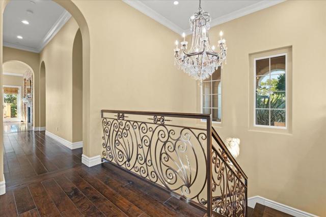 Magnificent Mediterranean Estate perched on 1.72 acre's in the Highlands Development with spectacular views of Los Gatos, Western Hill's, Mountain Winery, Cupertino Foothills, & East Bay. As you enter the wrought iron & glass doors you will find a formal entrance, formal dining room, formal living room with cast stone gas fireplace, box beam ceiling, Picture view window and french doors to exterior deck. There are 5 bedrooms with en-suite baths, 0ne 1/2 bath, including 2 large primary suites, one on each level. Spacious gourmet chef's kitchen with Thermador commercial grade appliances, 3 ovens, 6 burner gas cook-top, 2 dishwashers, wine fridge, warming drawer, and a huge center island. Attached family room with built-in cabinetry, box beam ceiling, built-in speakers, gas fireplace, and stack stone accent wall. Indoor laundry room with wash basin. Separate office with privacy glass doors. All bath surfaces are stone, granite, onyx, and travertine. Walk-in closets all with custom built-ins. Lower level Theater with screen and projector. Temperature controlled wine cellar with brick & wood beamed ceiling. Lower level game/media room with built-in speakers, 2nd butlers kitchen with rare Egyptian stone. Media rack, whole house Savant system, wood & stone floors. The list is endless!