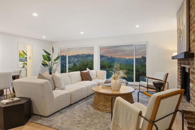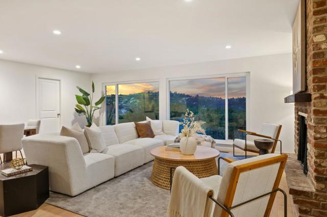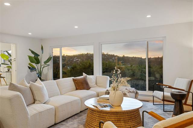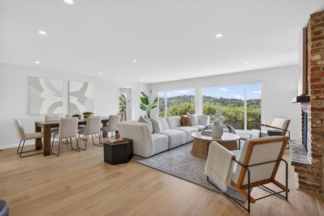 Welcome to Verano Vista, nestled in the highly sought-after Carlmont neighborhood.This expansive mid-century modern home offers 4 bds, 3 bths, plus a dedicated Office & Laundry Room, totaling over 2,250 sq.ft. on an extraordinary 20,000 sq.ft. Sunset View Lot. A lush lawn, citrus trees, new exterior painting, lighting & double-door entry create a stunning curb appeal. The updated eat-in kitchen flows seamlessly into the dining & living areas, anchored by a fireplace & breathtaking Canyon Views.The main level features 3 spacious bedrooms, including a serene Primary Suite w/picturesque Views & a remodeled bath. Downstairs boasts a large Family Room w/2nd fireplace, wet bar & private en-suite ideal for guests. Enjoy Tesla solar, EV charging, backup generator, dual-pane windows, new flooring & new fresh updates throughout. The beautifully landscaped backyard offers various exterior areas w/travertine patios, decking, lush turf & serene Sunset Views, perfect for entertaining & everyday living.